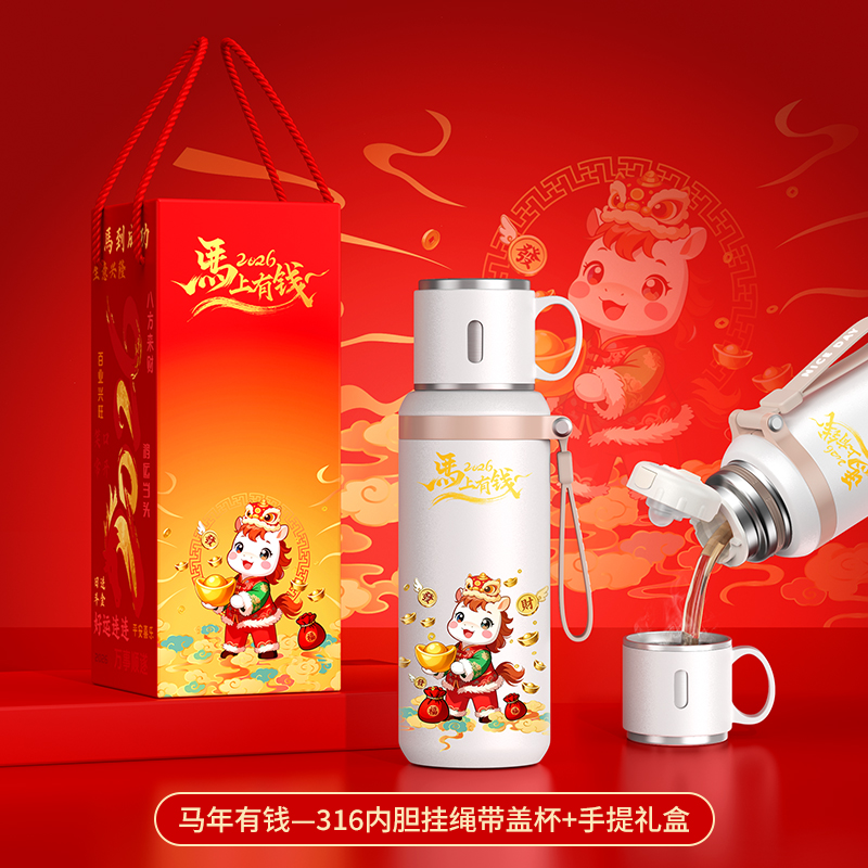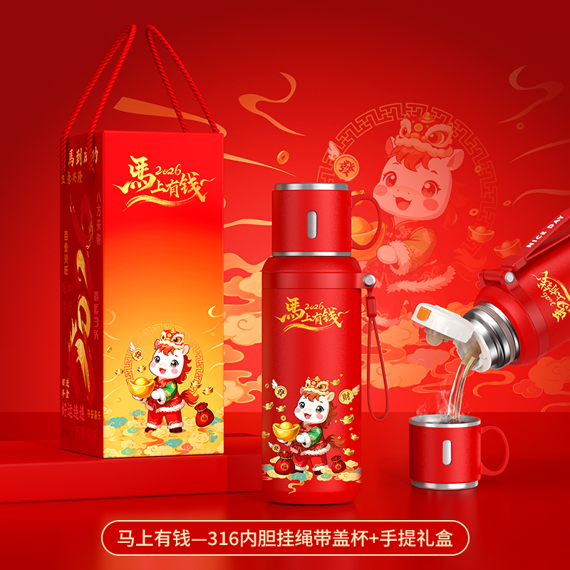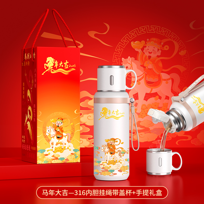马年316小碗盖杯礼盒;双杯盖设计内胆316材质礼盒;开门红精美保温杯礼盒