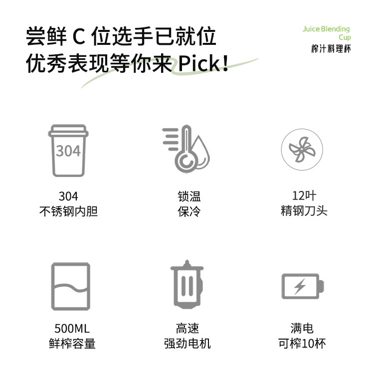 快速碎冰,制作冰沙、冷冻甜品;刀组为304不锈钢,耐腐蚀、寿命长。;一键自清洁功能,高速水流冲洗刀组