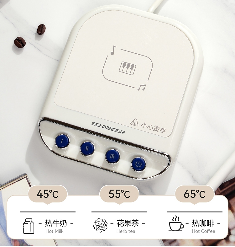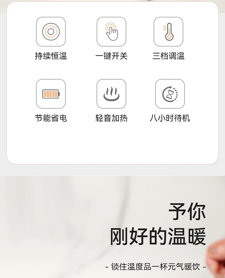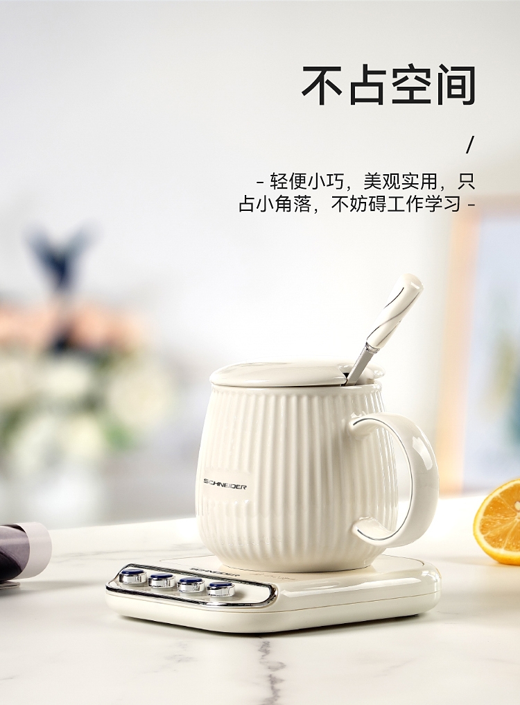 会议不凉茶,专注不停歇;随时温水,温暖身心;不仅适用于配套的马克杯,大多数玻璃杯、陶瓷杯
