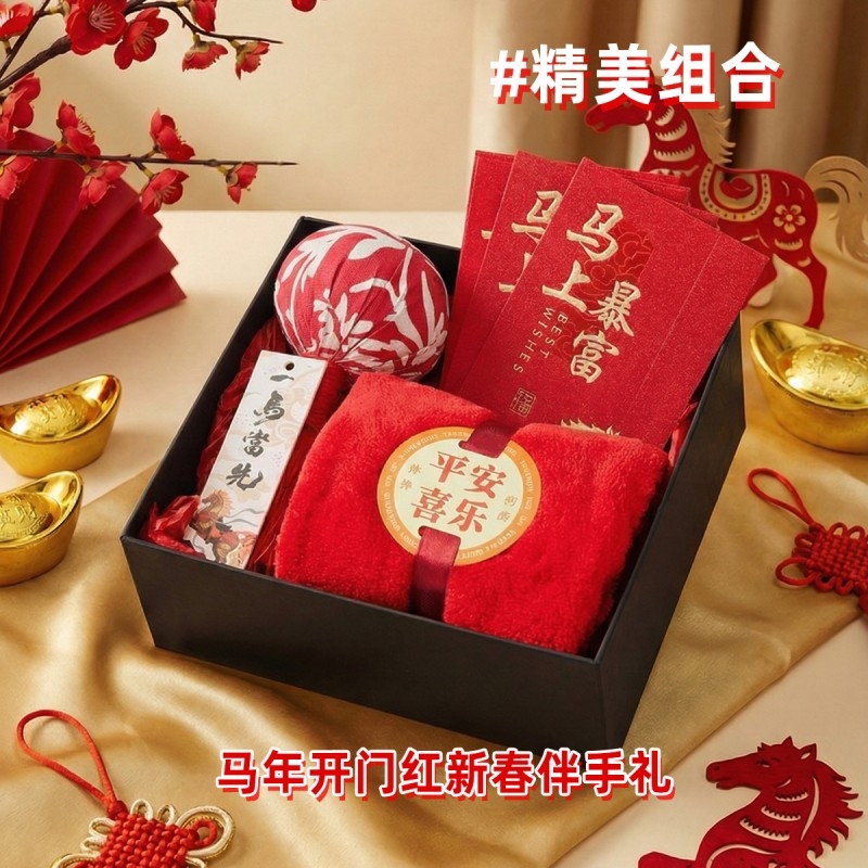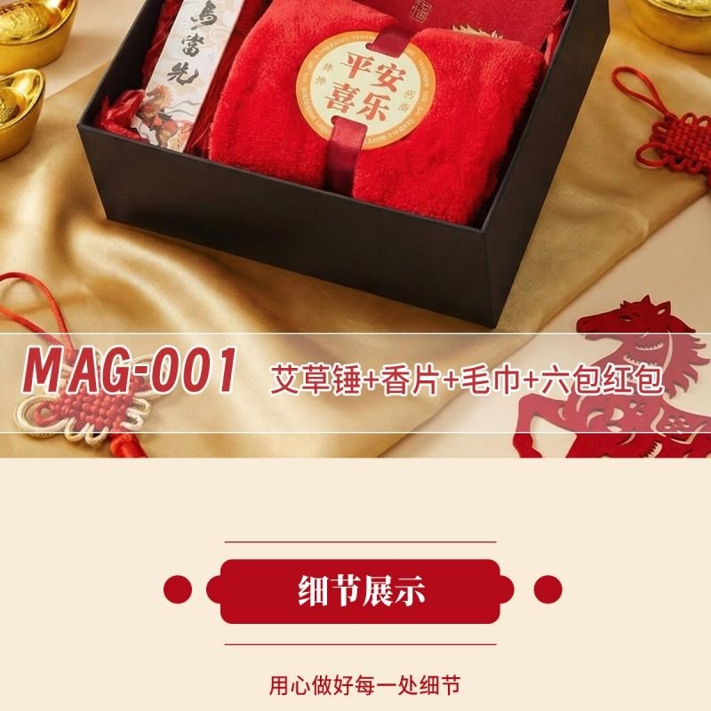 组合:马年红包*6张、艾草养生锤、一马当先香片香挂、平安喜乐毛巾75*34cm