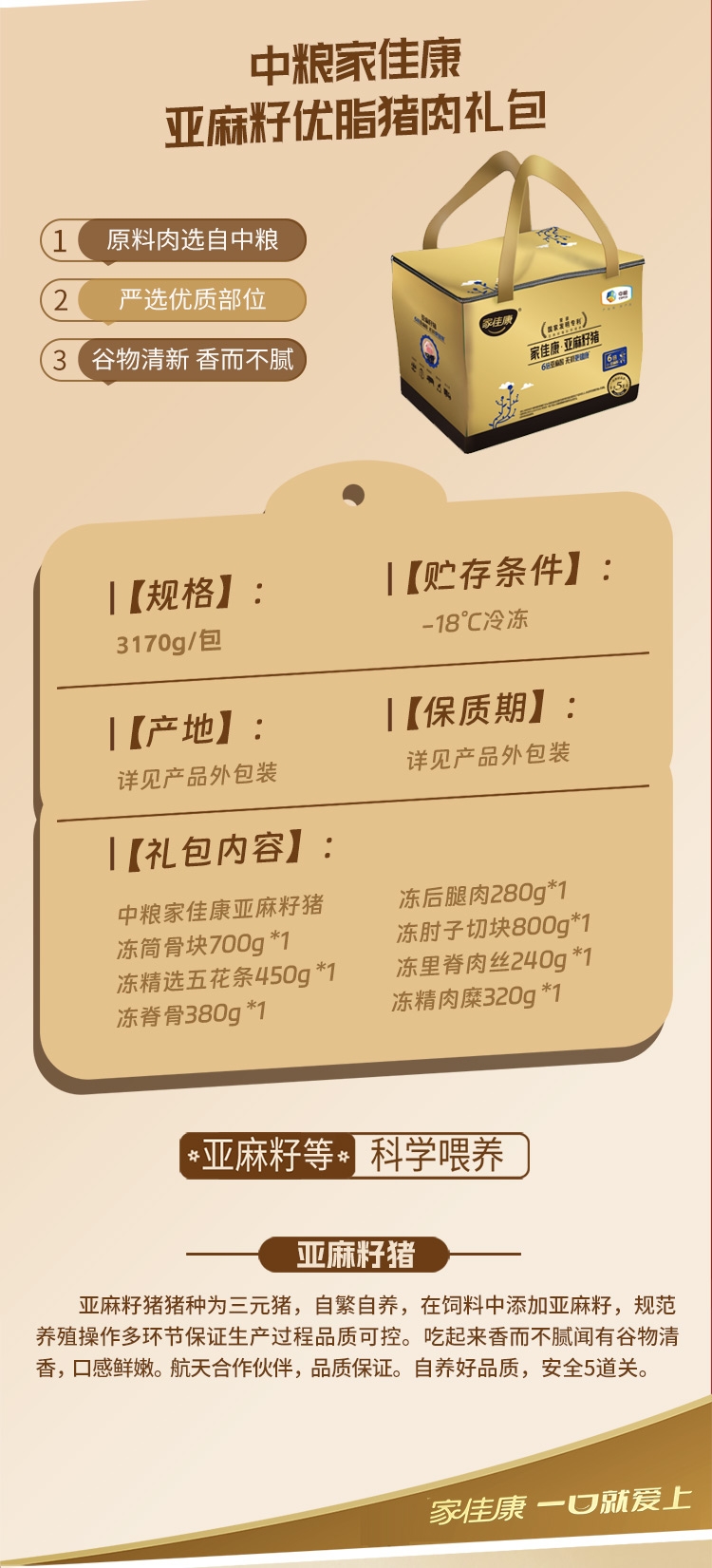 家佳康 亚麻籽优脂猪肉礼包3170g