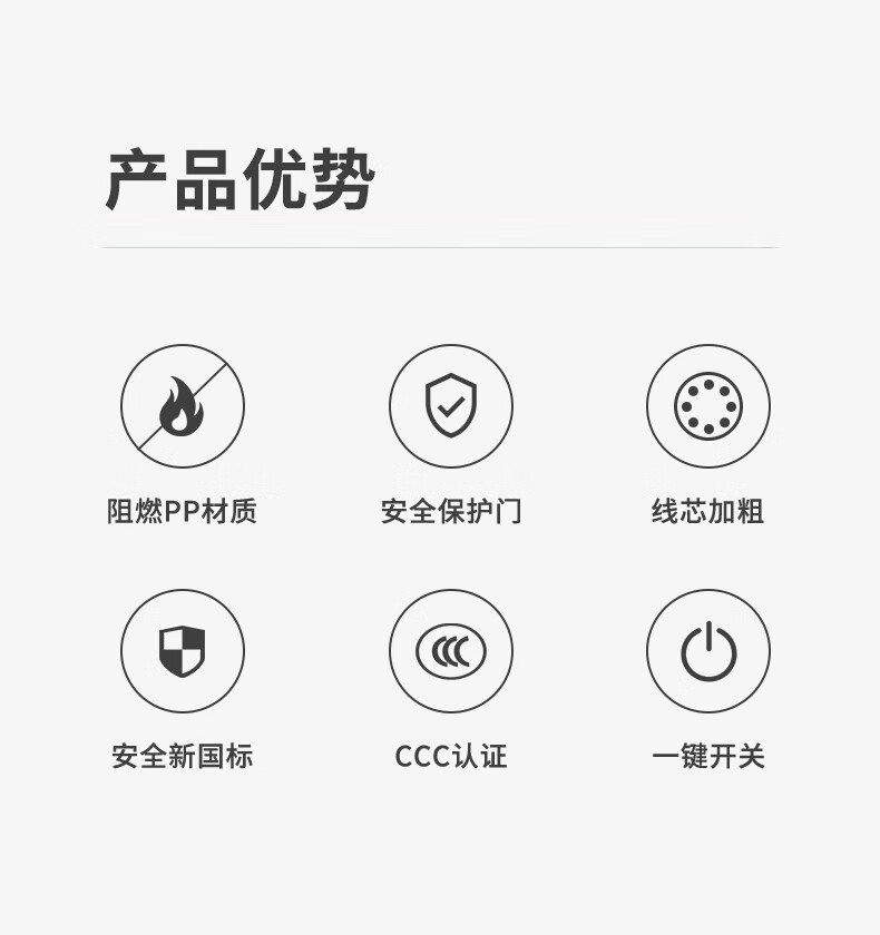 新国标3C认证;大间距/线芯加粗;节能一体铜条;高温阻燃材质