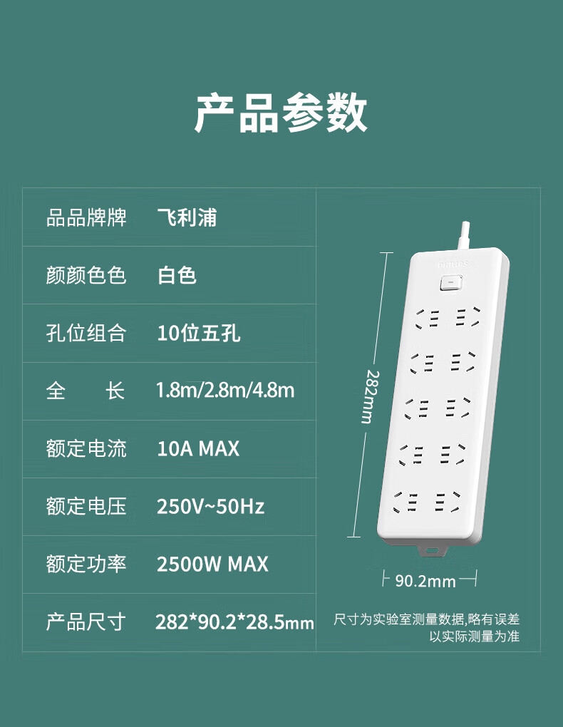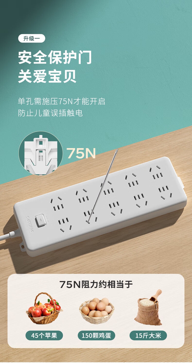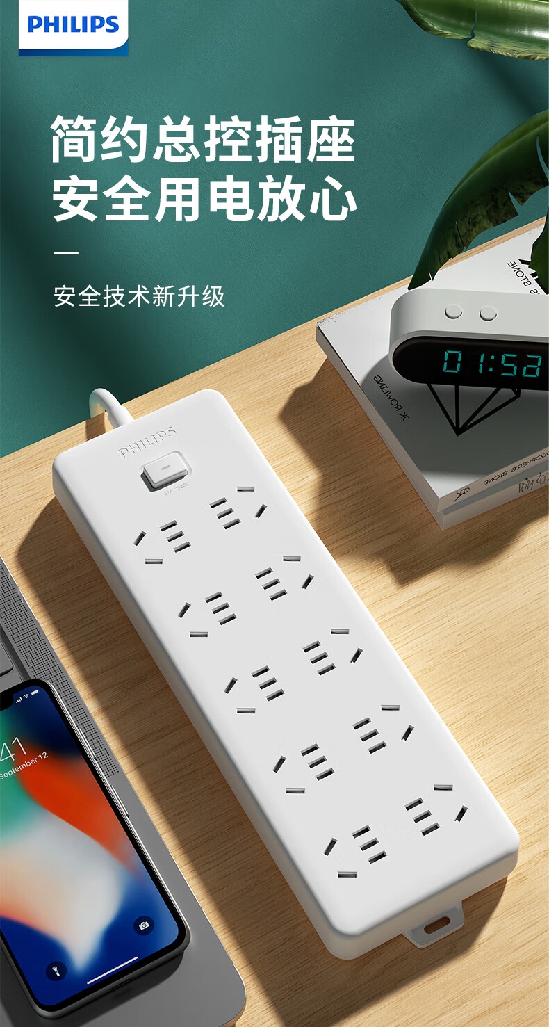 飞利浦 10孔位排插总控开关1.8米SPN2103
