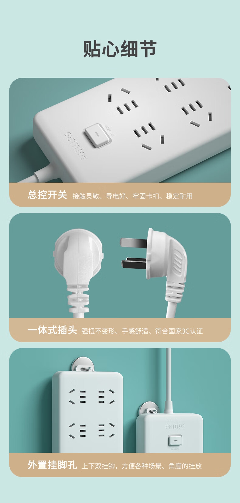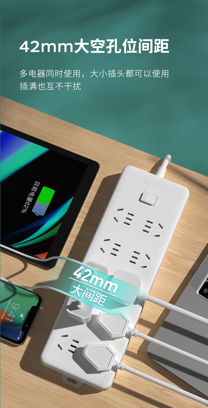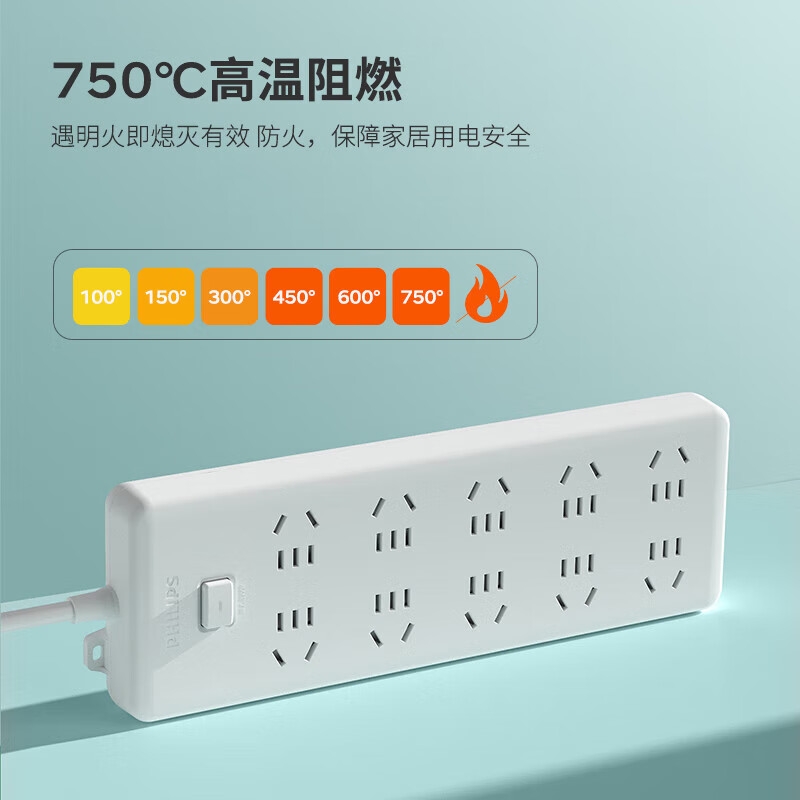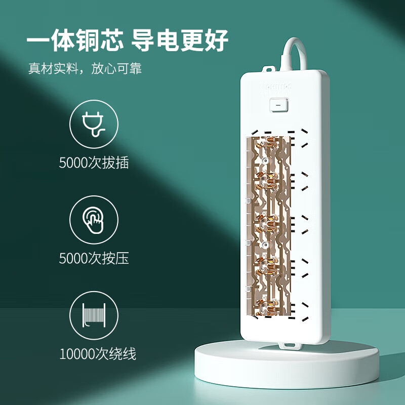 飞利浦 10孔位排插总控开关1.8米SPN2103