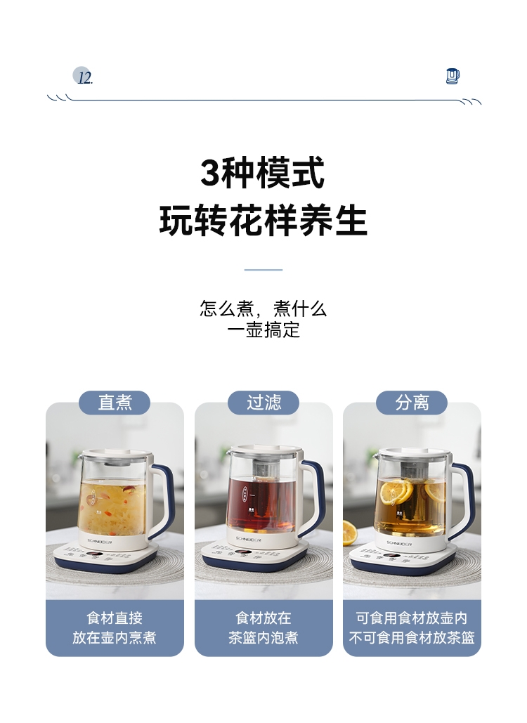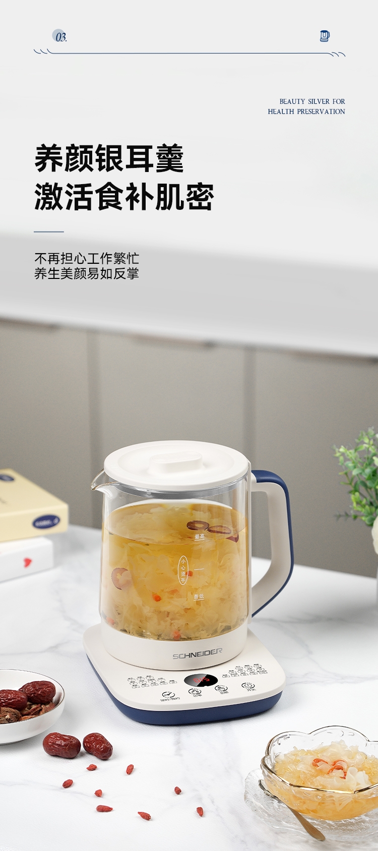 不仅是工具,更是关爱自己、注重健康的生活态度的体现;小巧便携,可煮水果茶、养生茶,替代高糖饮料;防溢锅技术,炖煮粘稠食材不易溢出