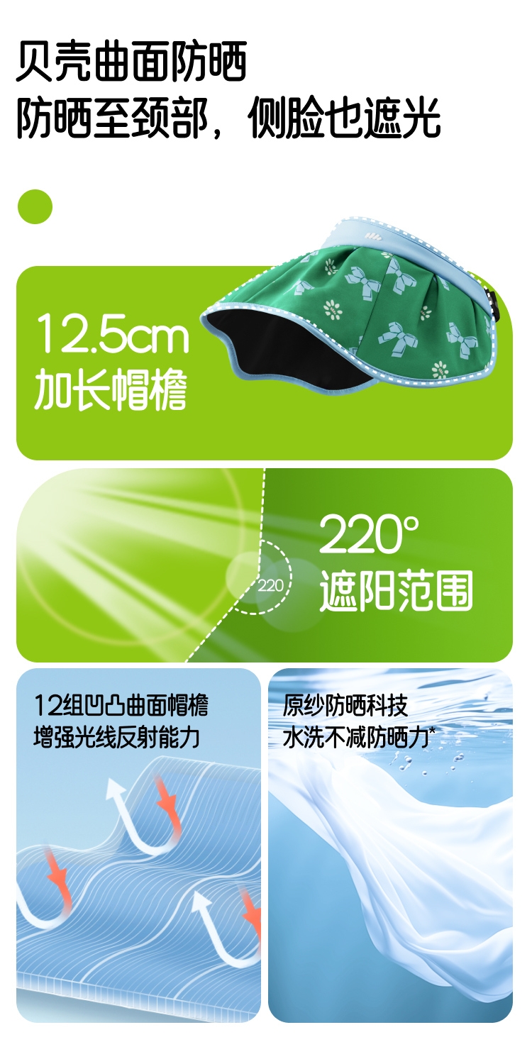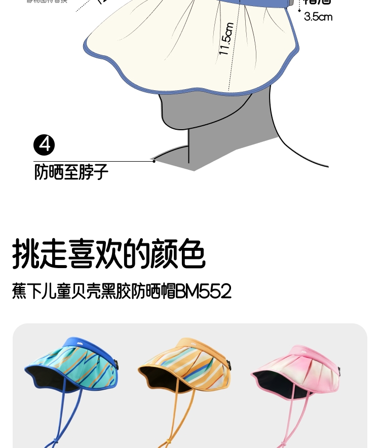 蕉下 儿童贝壳黑胶防晒帽BM552