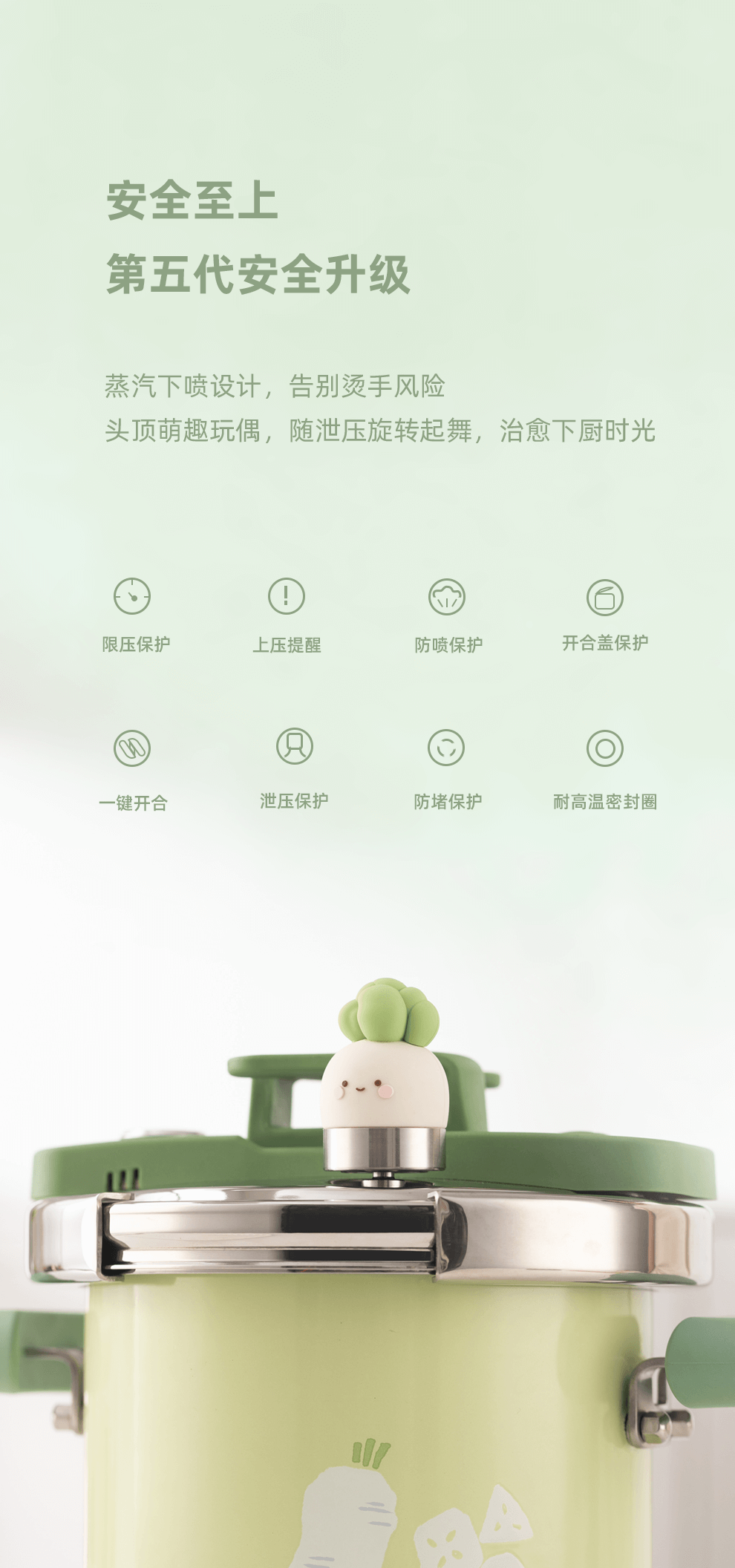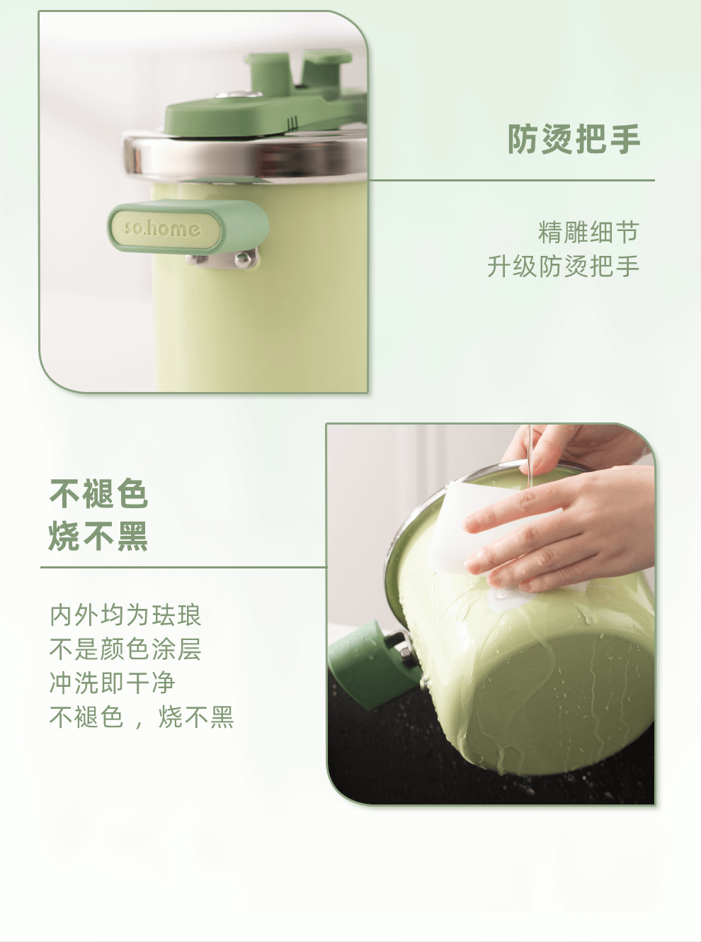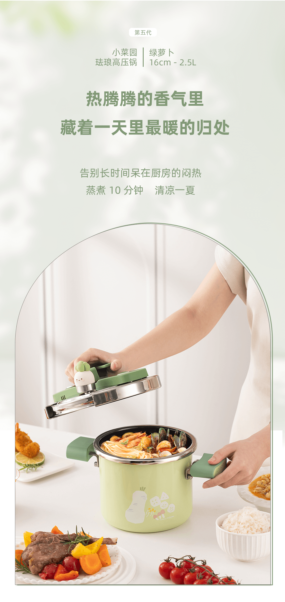德国进口珐琅,品质卓越;120KPA的高压设计;专利旋转开并,安全便捷