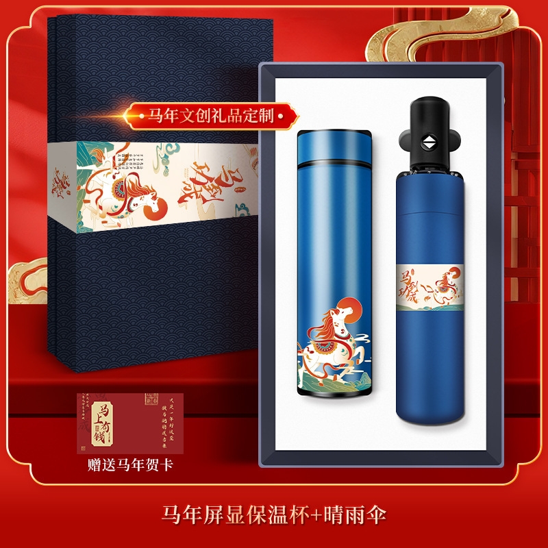 保温杯雨伞两件套(蓝色)