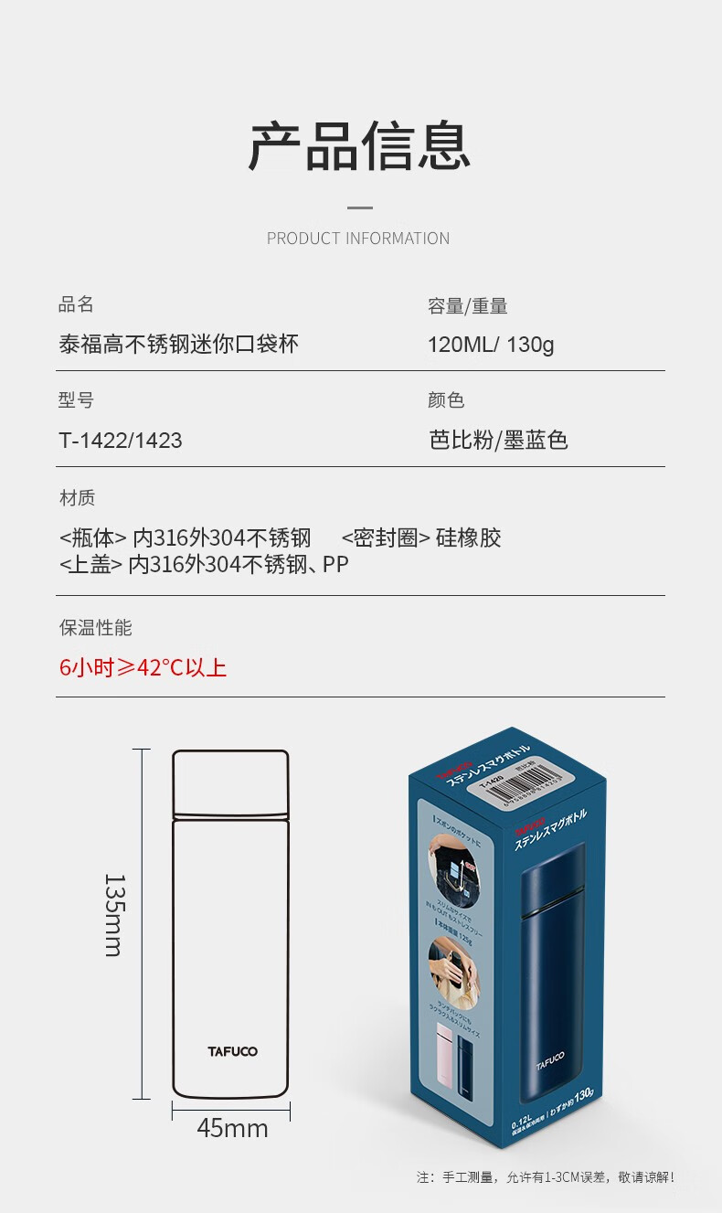 泰福高 迷你保温杯便携咖啡杯120mlT1422/T1423/T1424