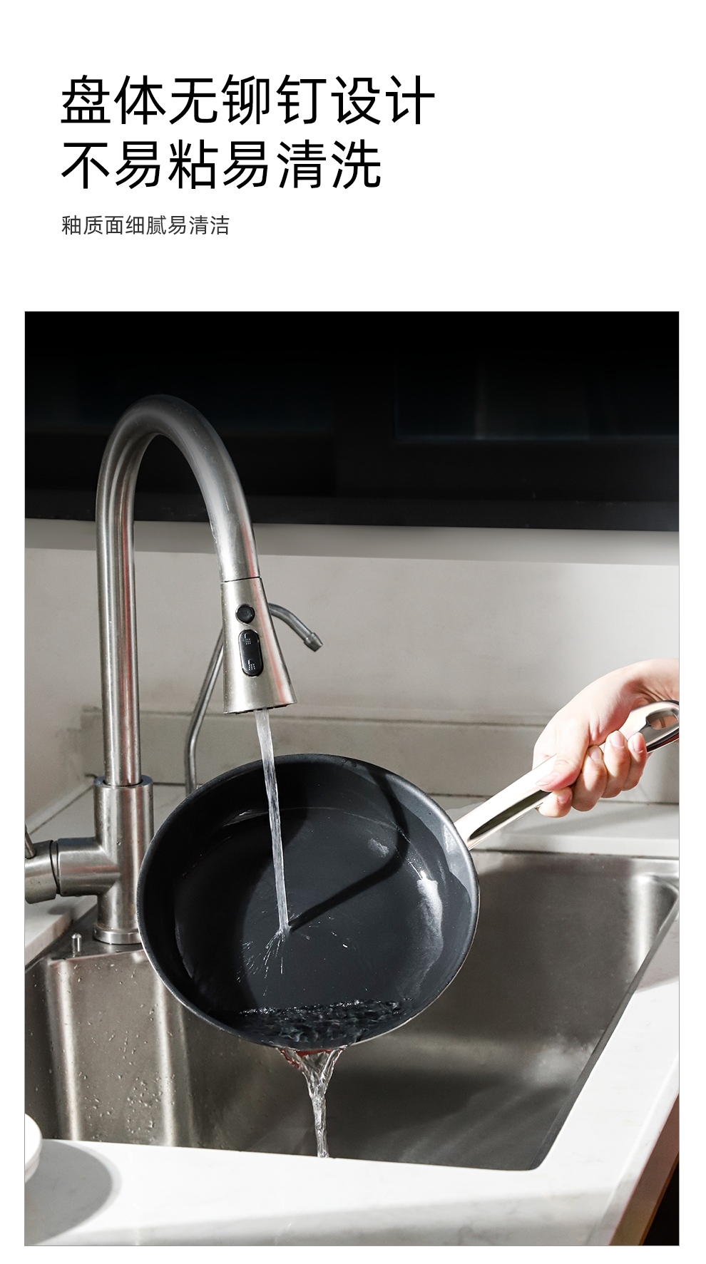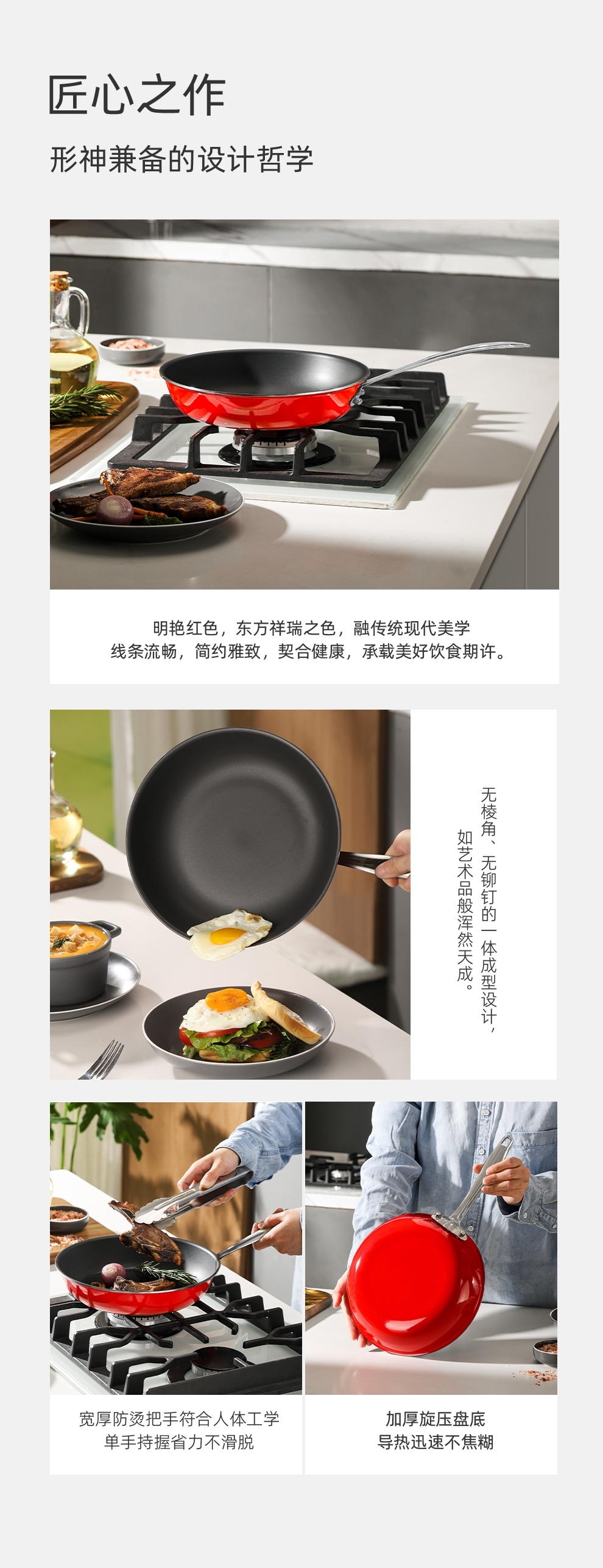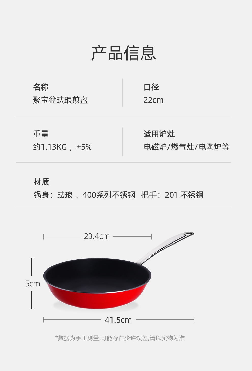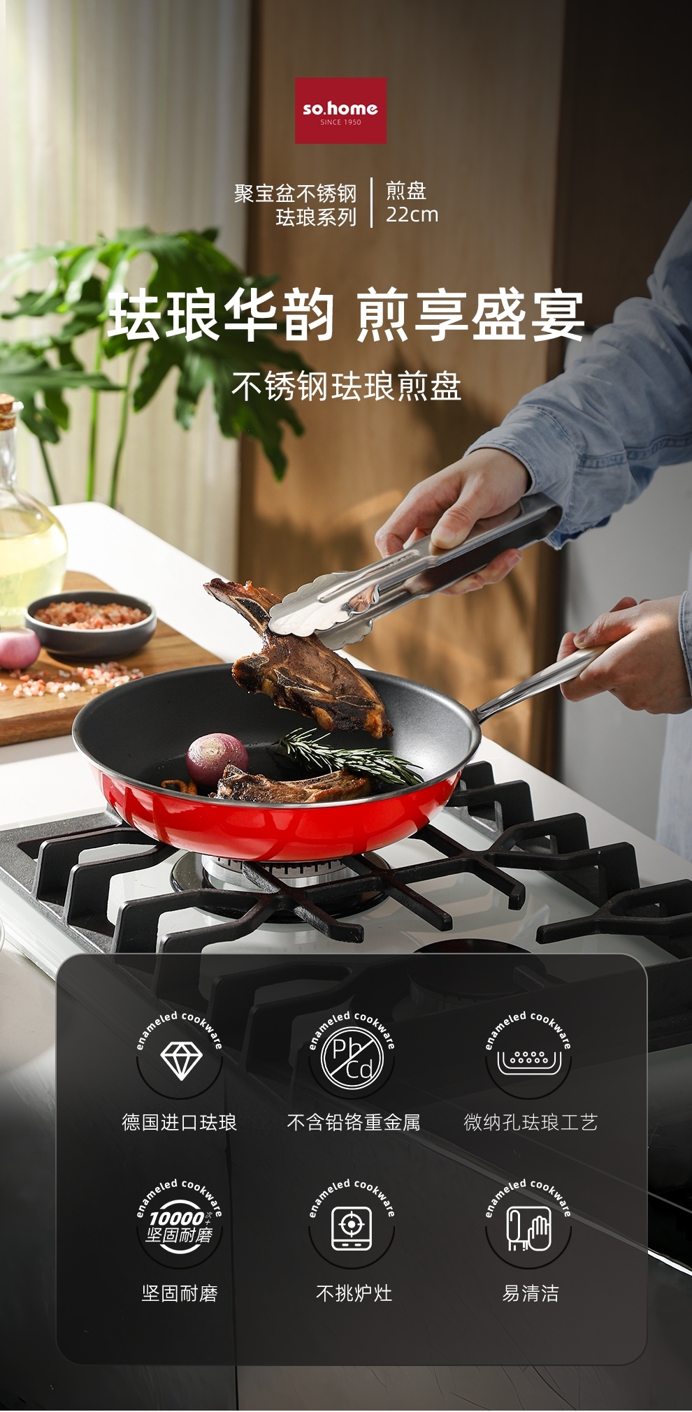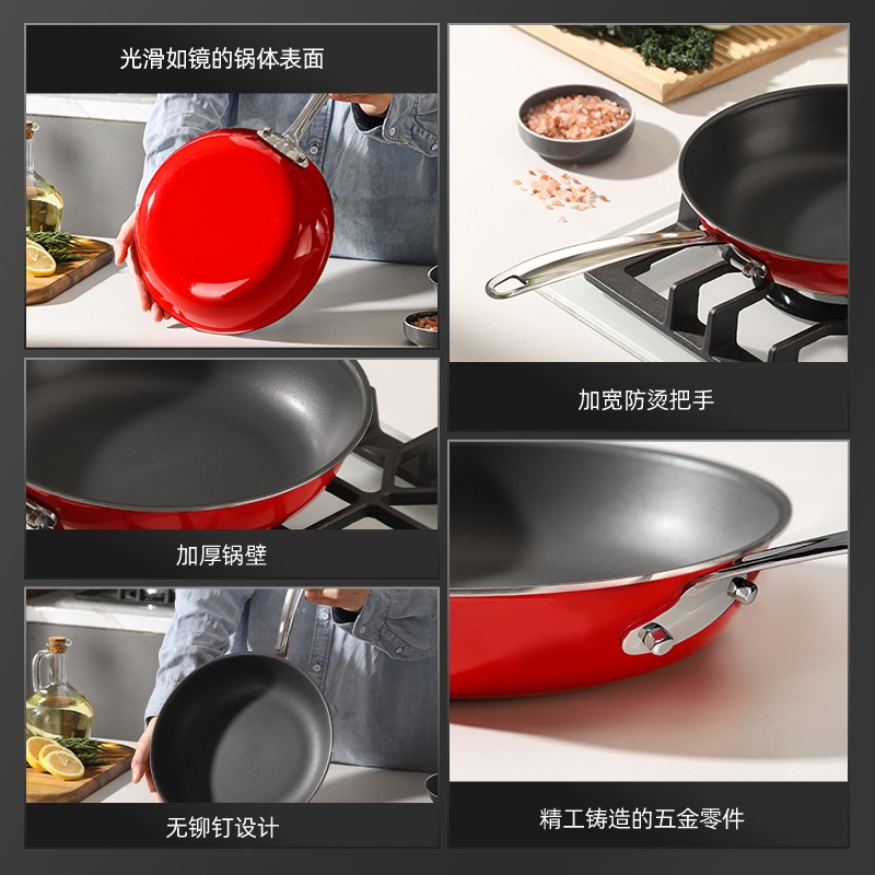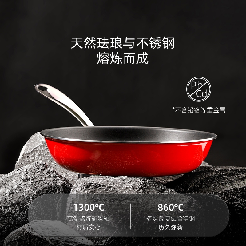德国进口珐琅与不锈钢流光锁鲜,还原食材本真;无铅无异味,健康无害,外扩盘壁.翻面方便,出锅顺畅;加宽防烫把手,锅身受热快速,全灶具通用