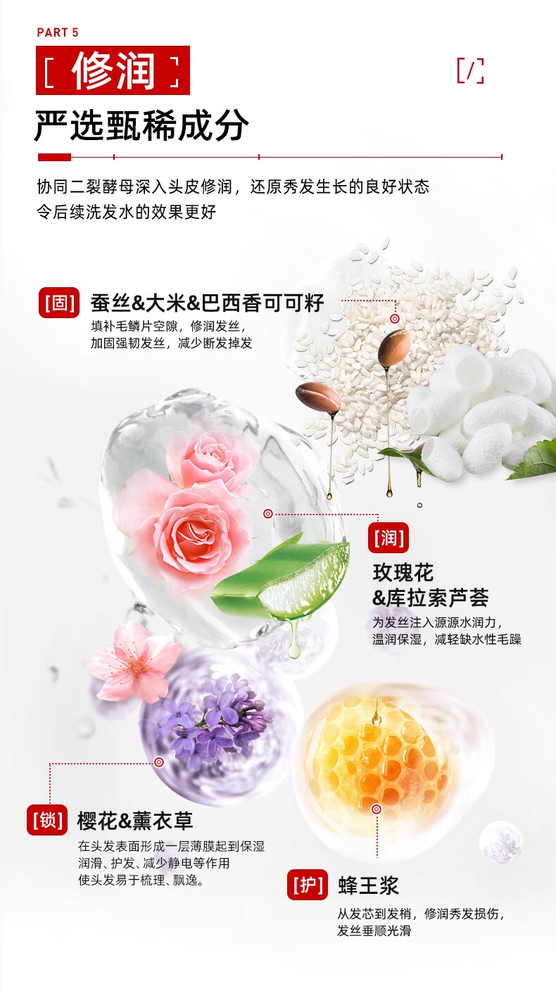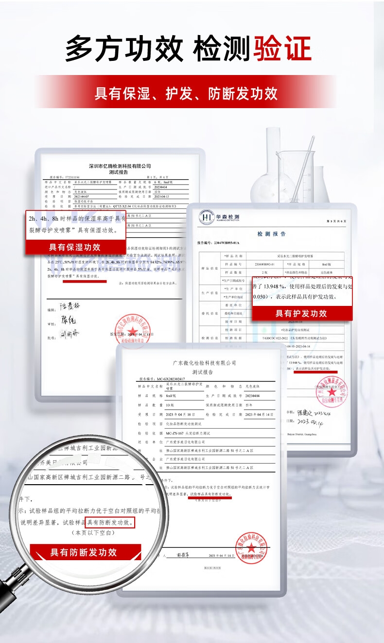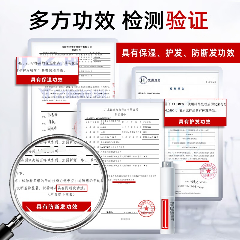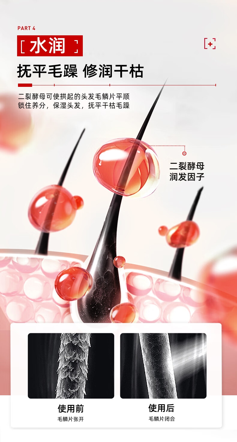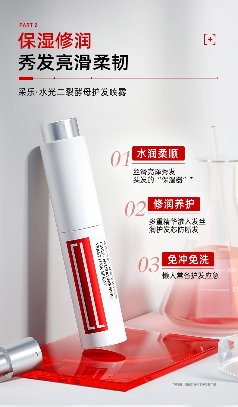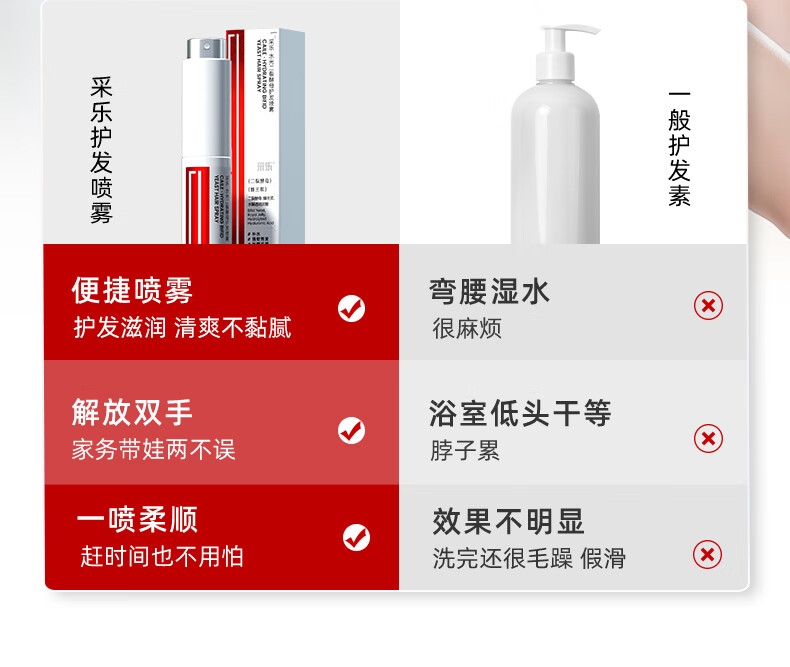 水润柔顺 丝滑亮泽秀发,头发的“保湿器’;修润养护 多重精华渗入发丝,润护发芯防断发;免冲免洗 懒人常备护发应急