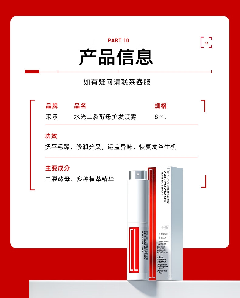 采乐 水光二裂酵母护发喷雾8MLCP207