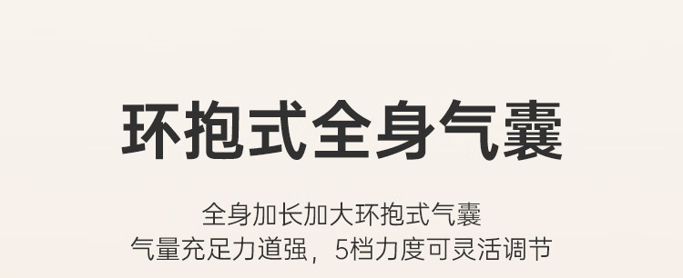 功能:局部热疗气囊力度调节,滚轮速度调节,按摩强度调节,自动侦测功能
