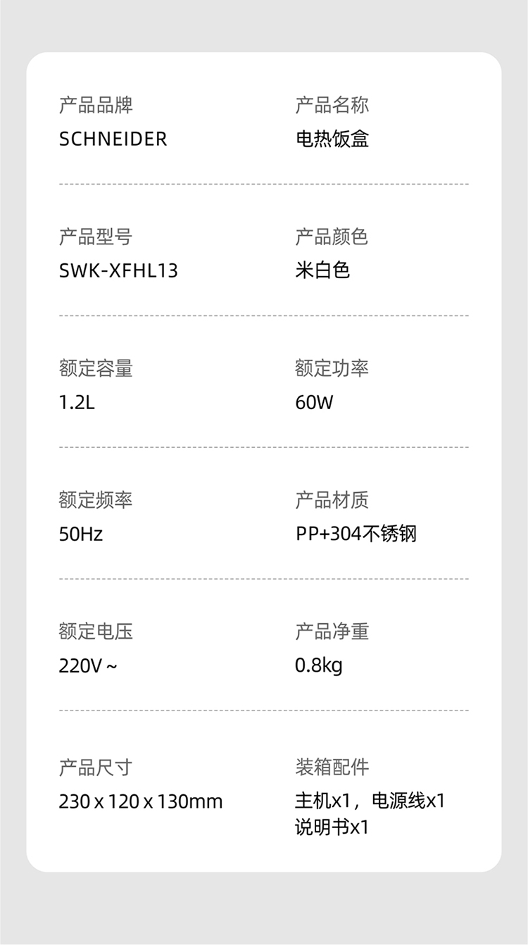 施耐德 电热饭盒1.2LSWK-XFHL13