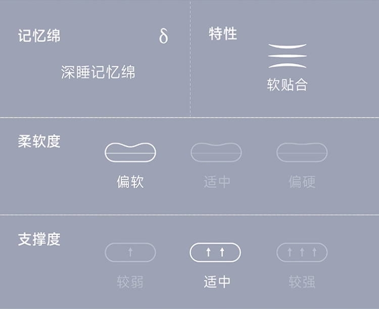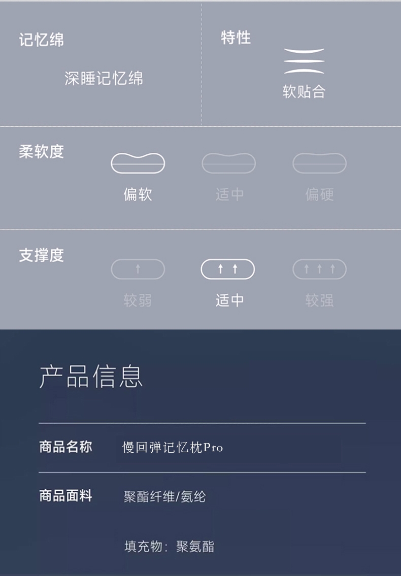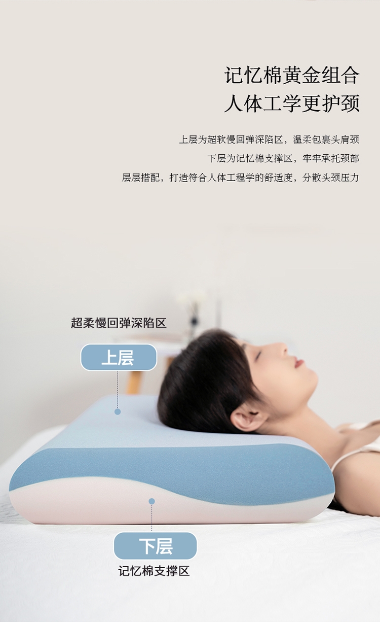 独特的温感特性和慢回弹特性;能够根据人体温度和压力的变化而改变其形状;符合人体工程学,有助于预防颈椎问题
