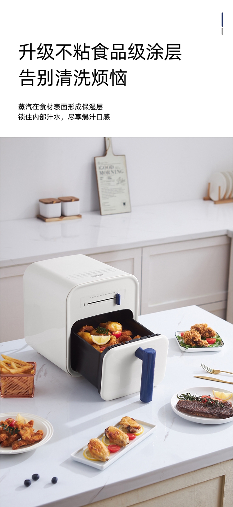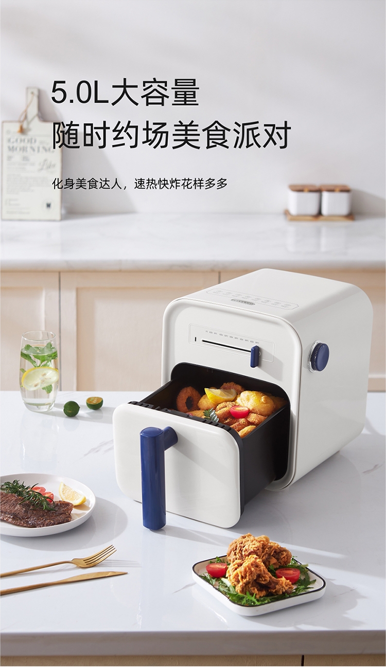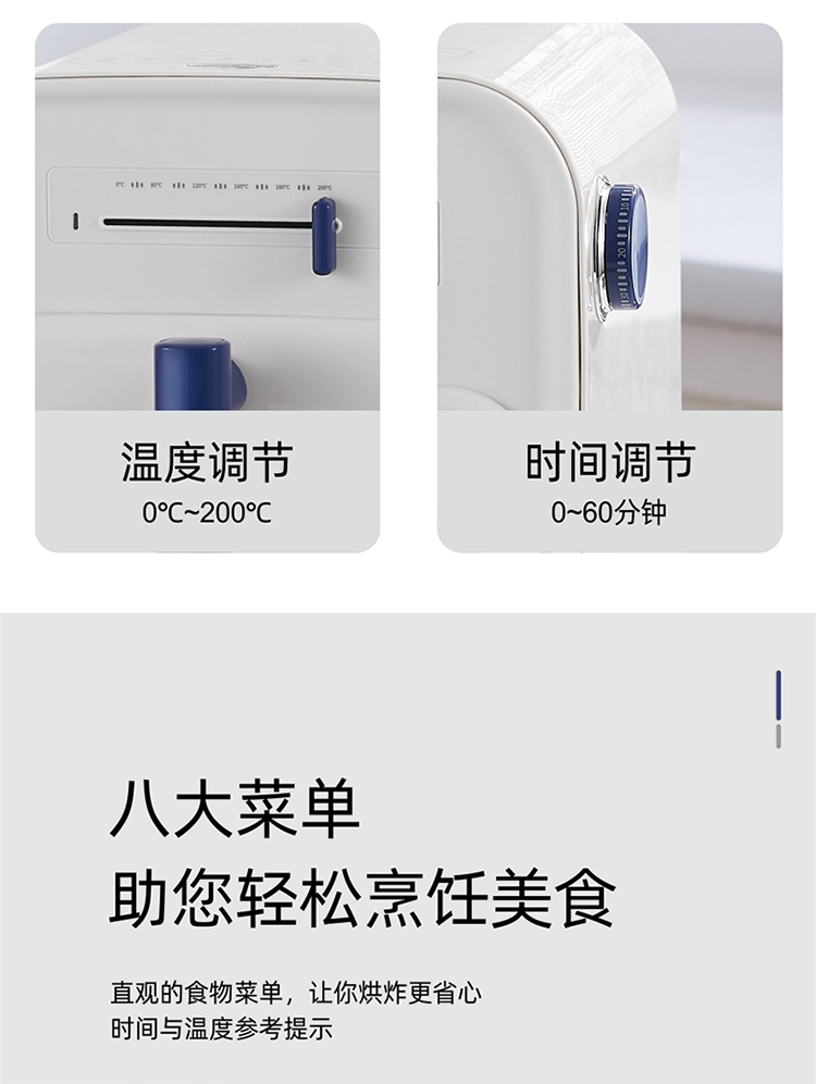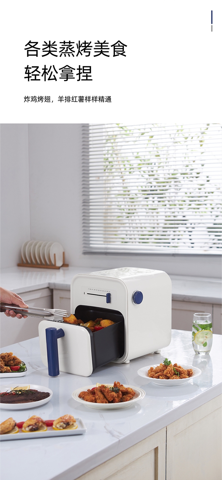 紧凑设计适合小厨房或单身公寓,替代烤箱、微波炉等;一键式智能预设程序(薯条、鸡翅、烘焙等);相比大型烤箱,加热更快、耗电量更低。