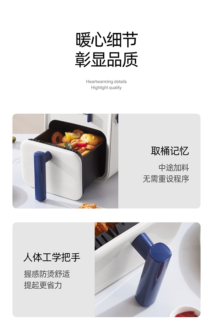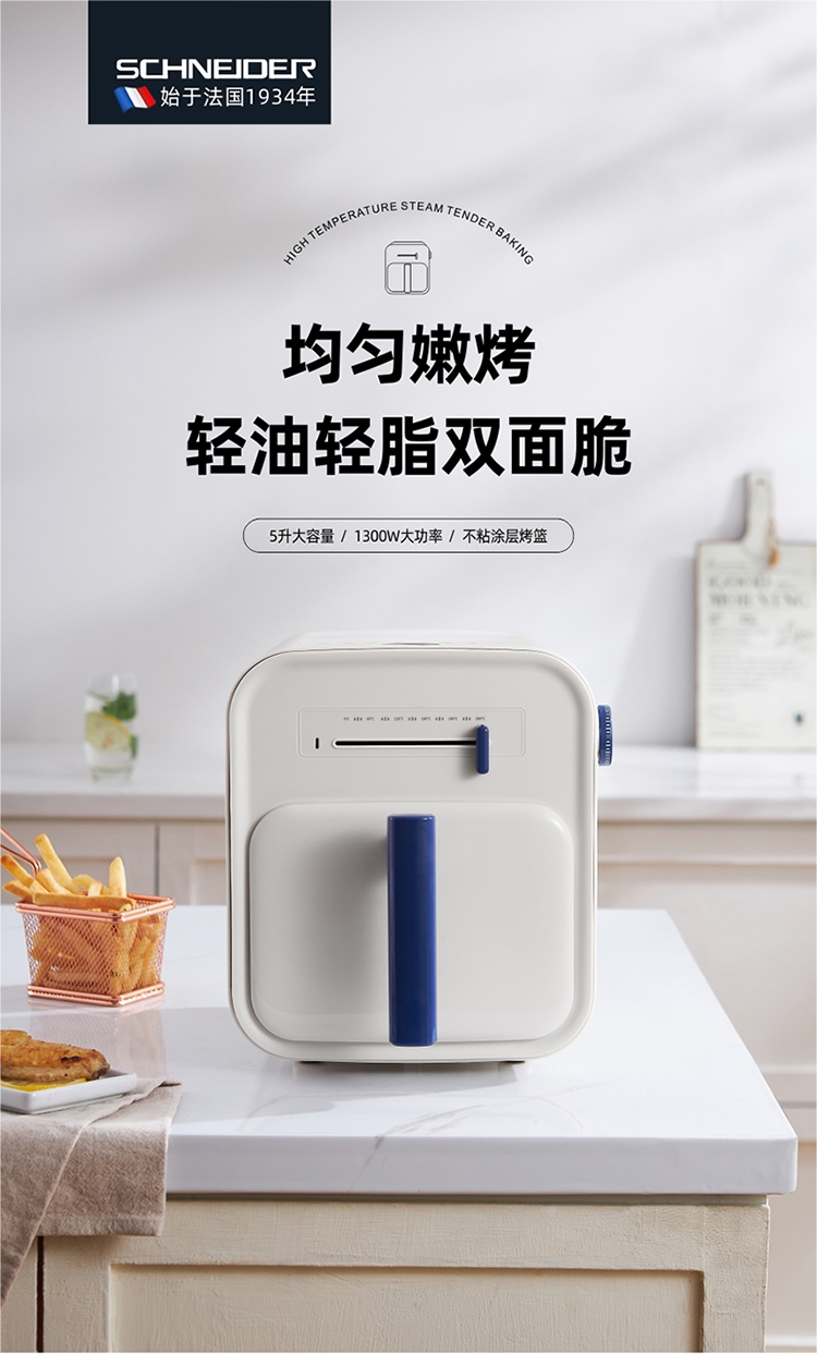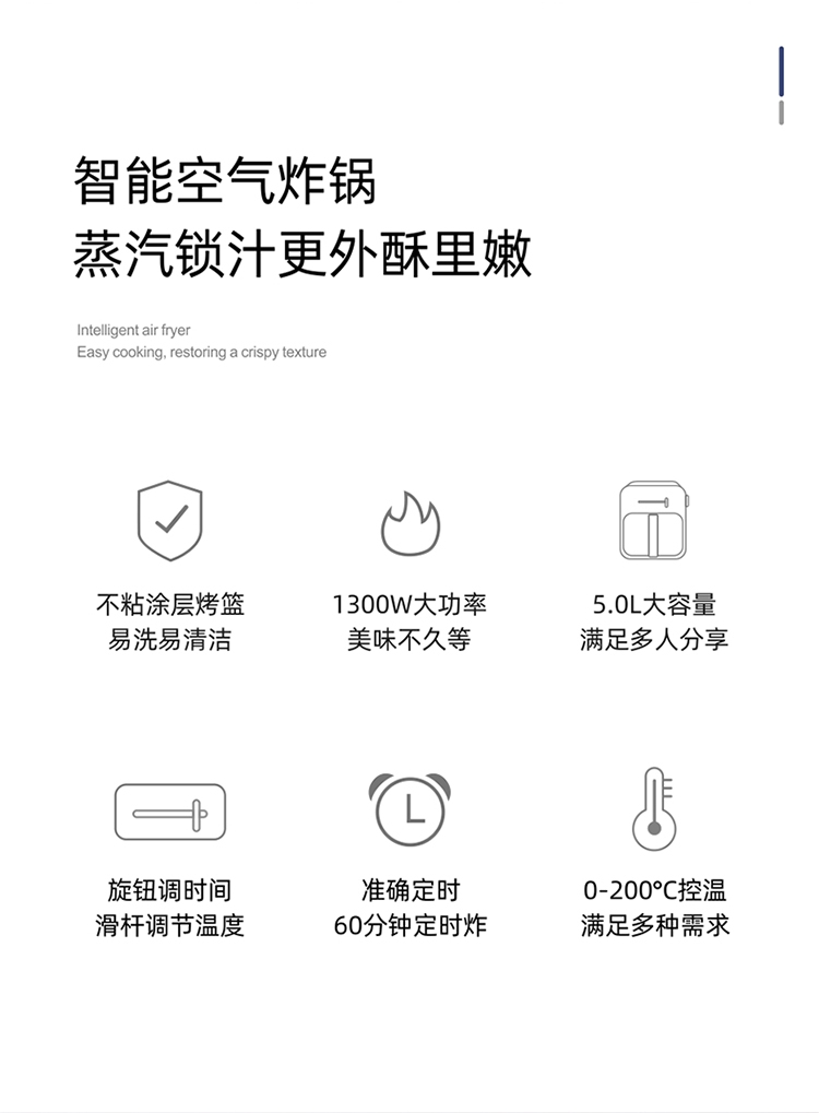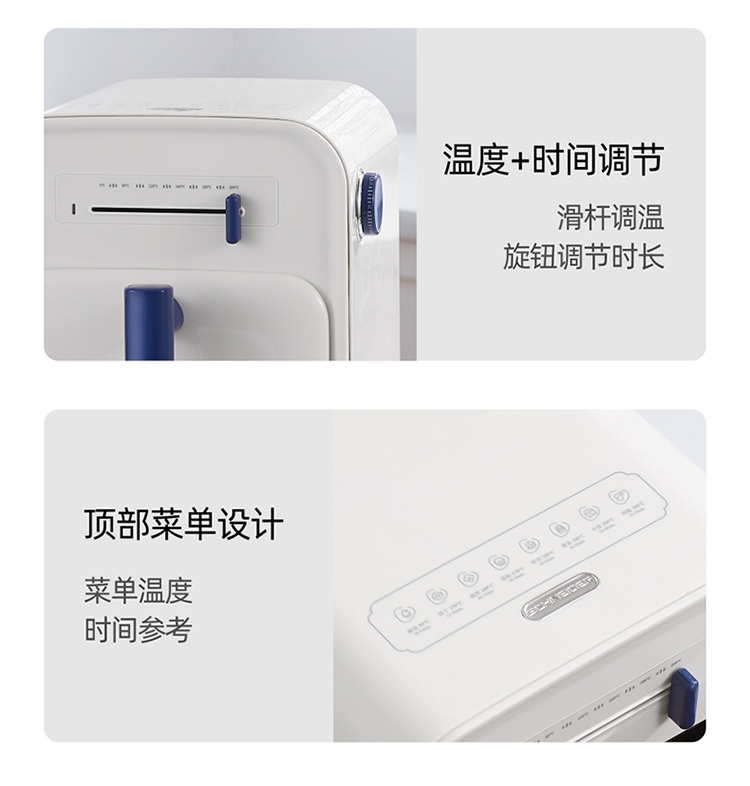 紧凑设计适合小厨房或单身公寓,替代烤箱、微波炉等;一键式智能预设程序(薯条、鸡翅、烘焙等);相比大型烤箱,加热更快、耗电量更低。