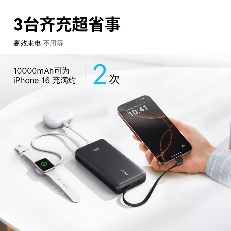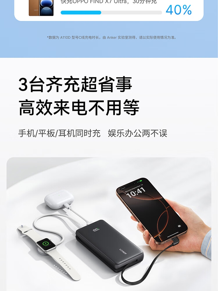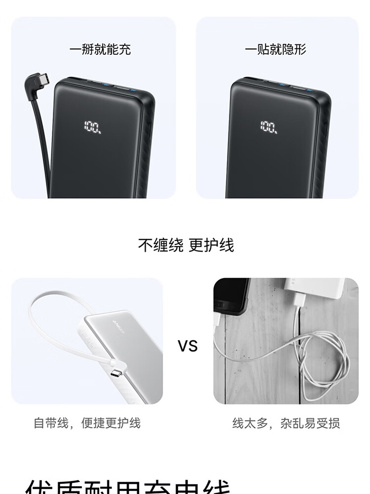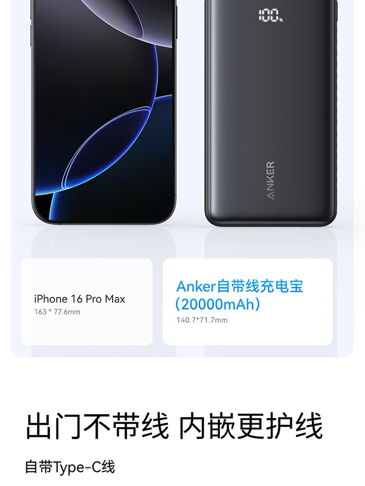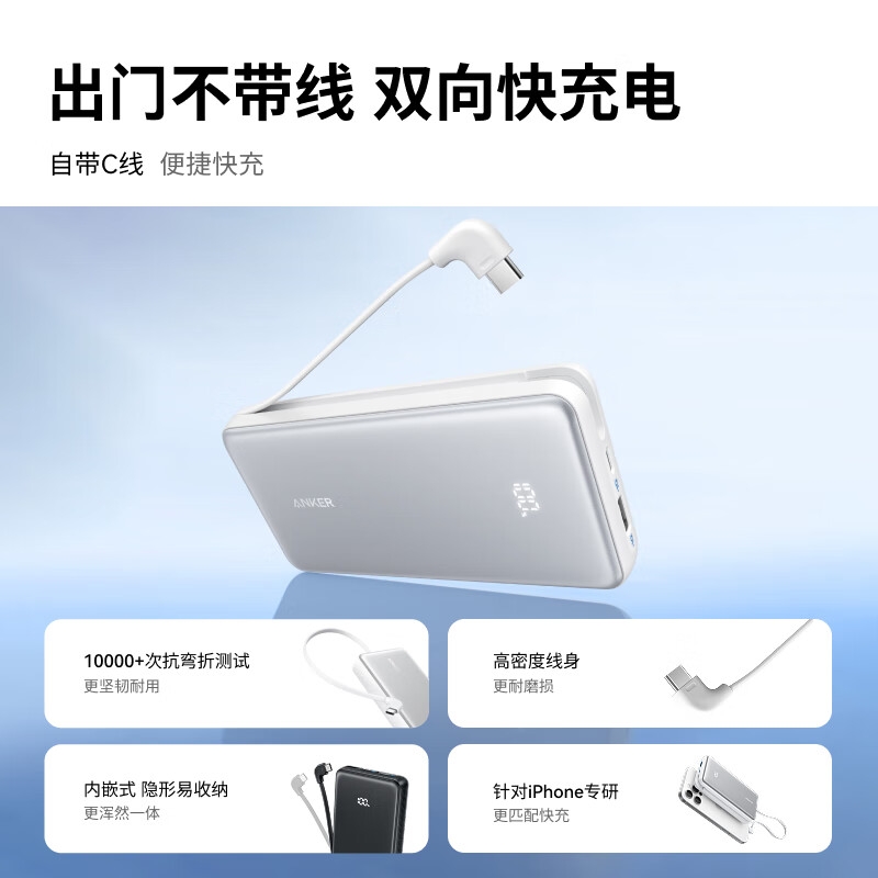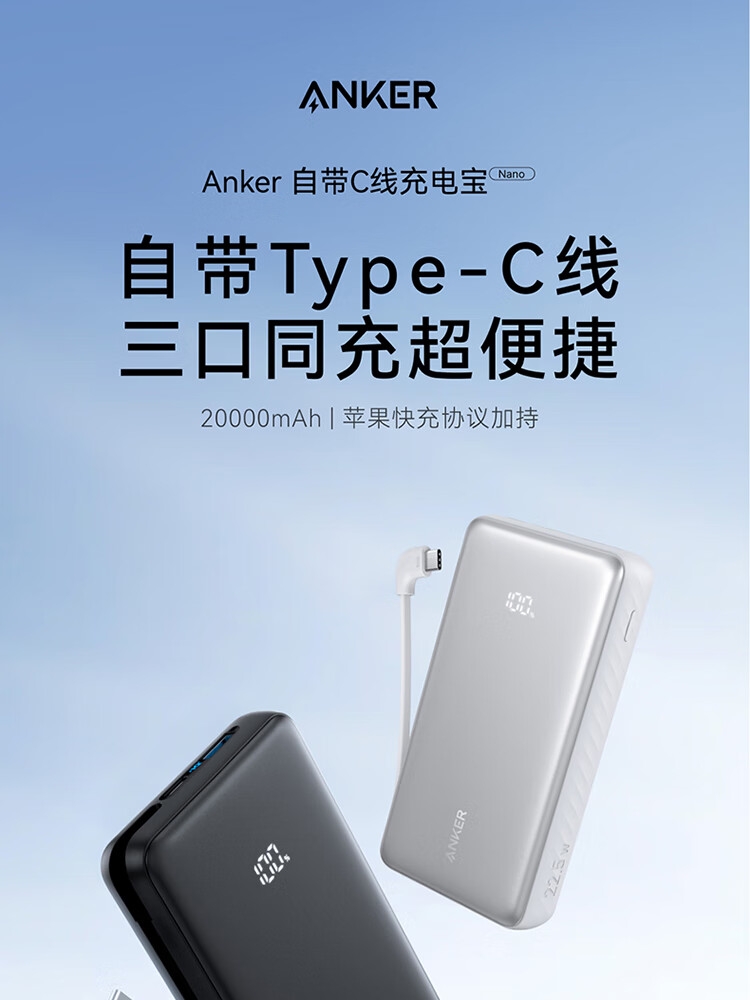 安克 2万毫安自带C线快充充电宝A110E