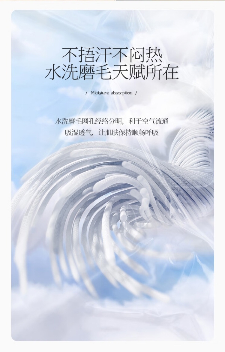 面料经过特殊水洗处理;表面色调、光泽更加柔和,手感更加柔软;涤具有不易变型不褪色,免熨烫的优点