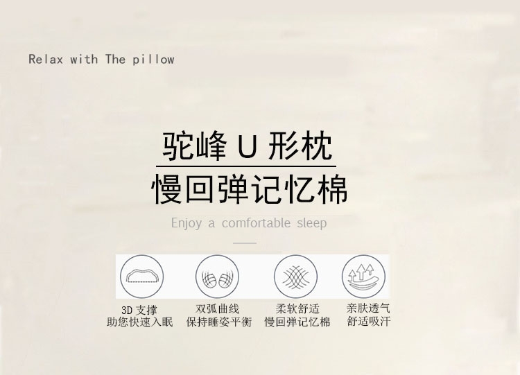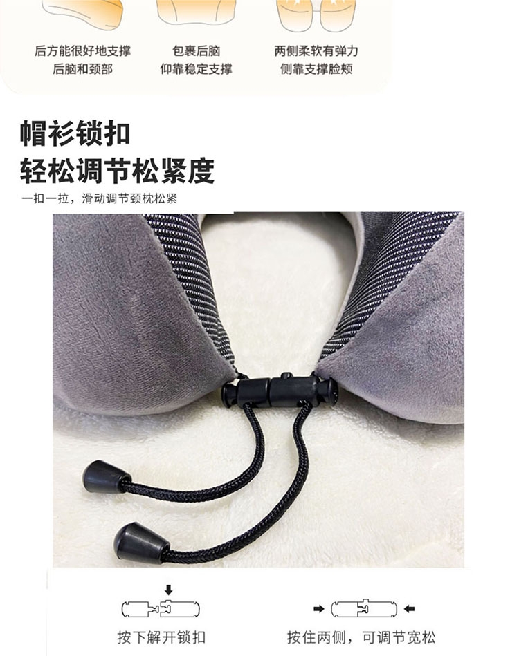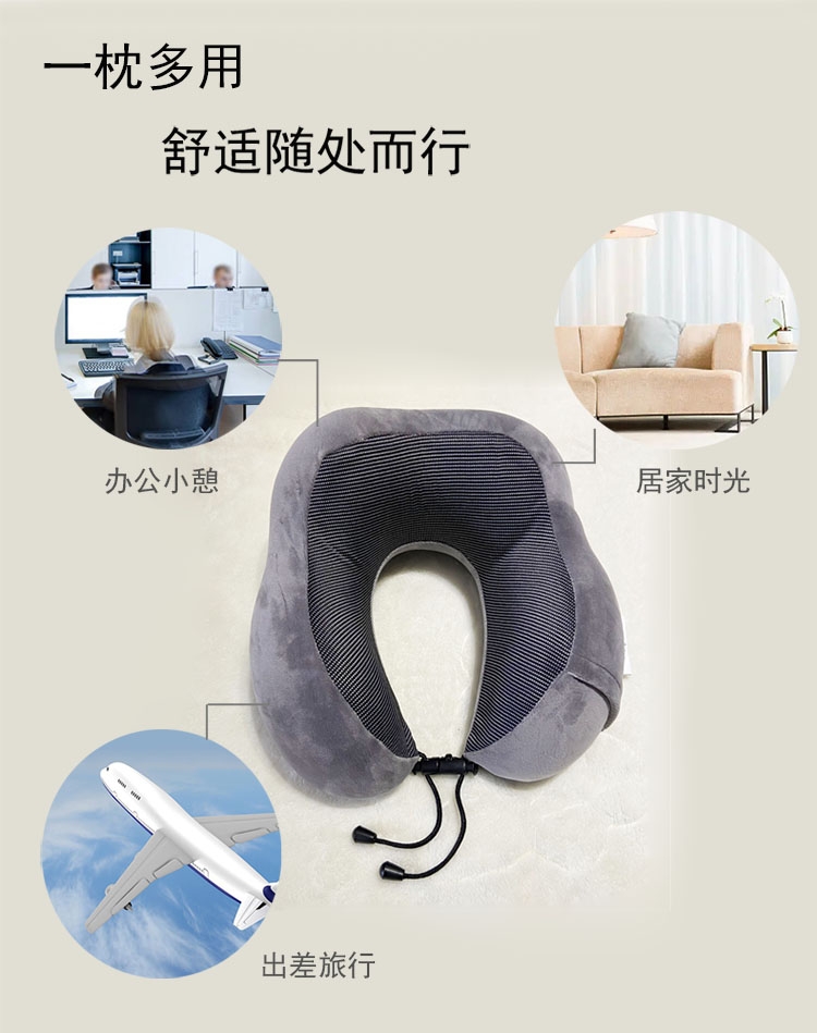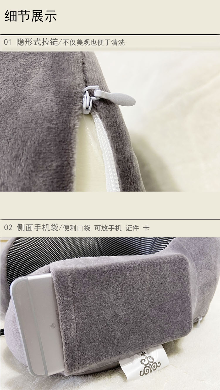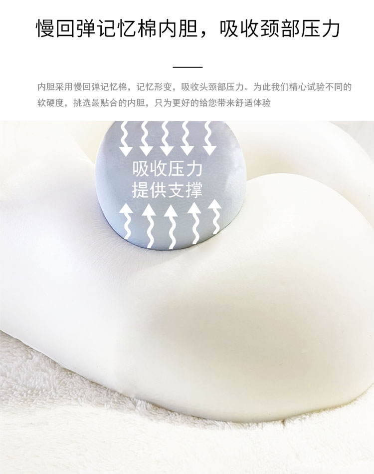 人性化设计360度环绕,自然贴合颈、肩曲线;记忆棉内芯舒适慢回弹,软弹无异味,吸收压力;效的承托头部的两侧,缓解颈部的疲劳