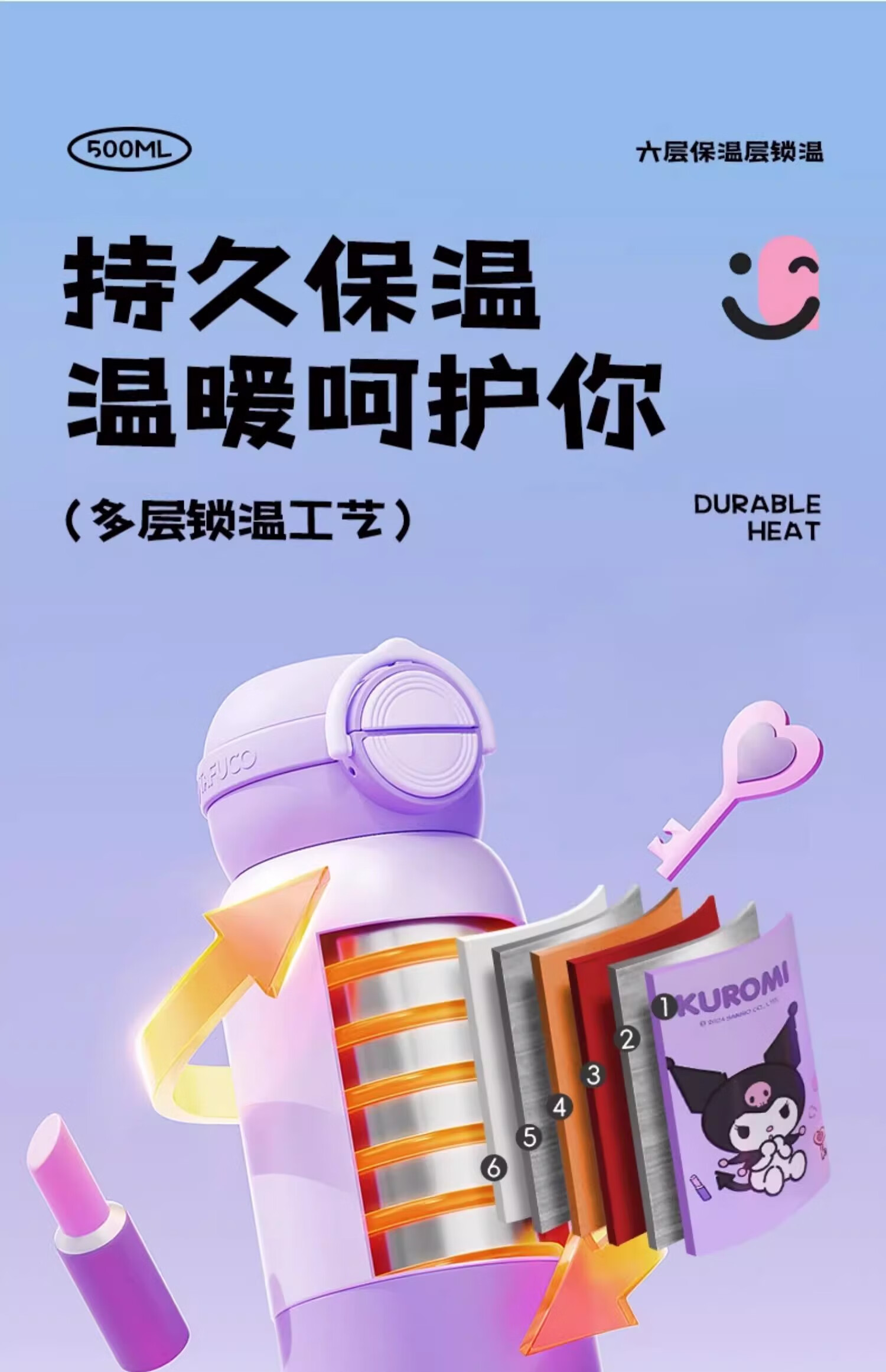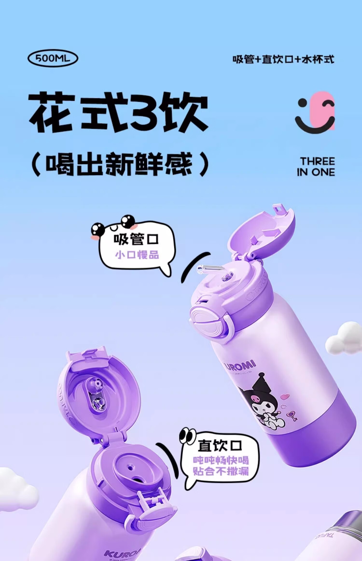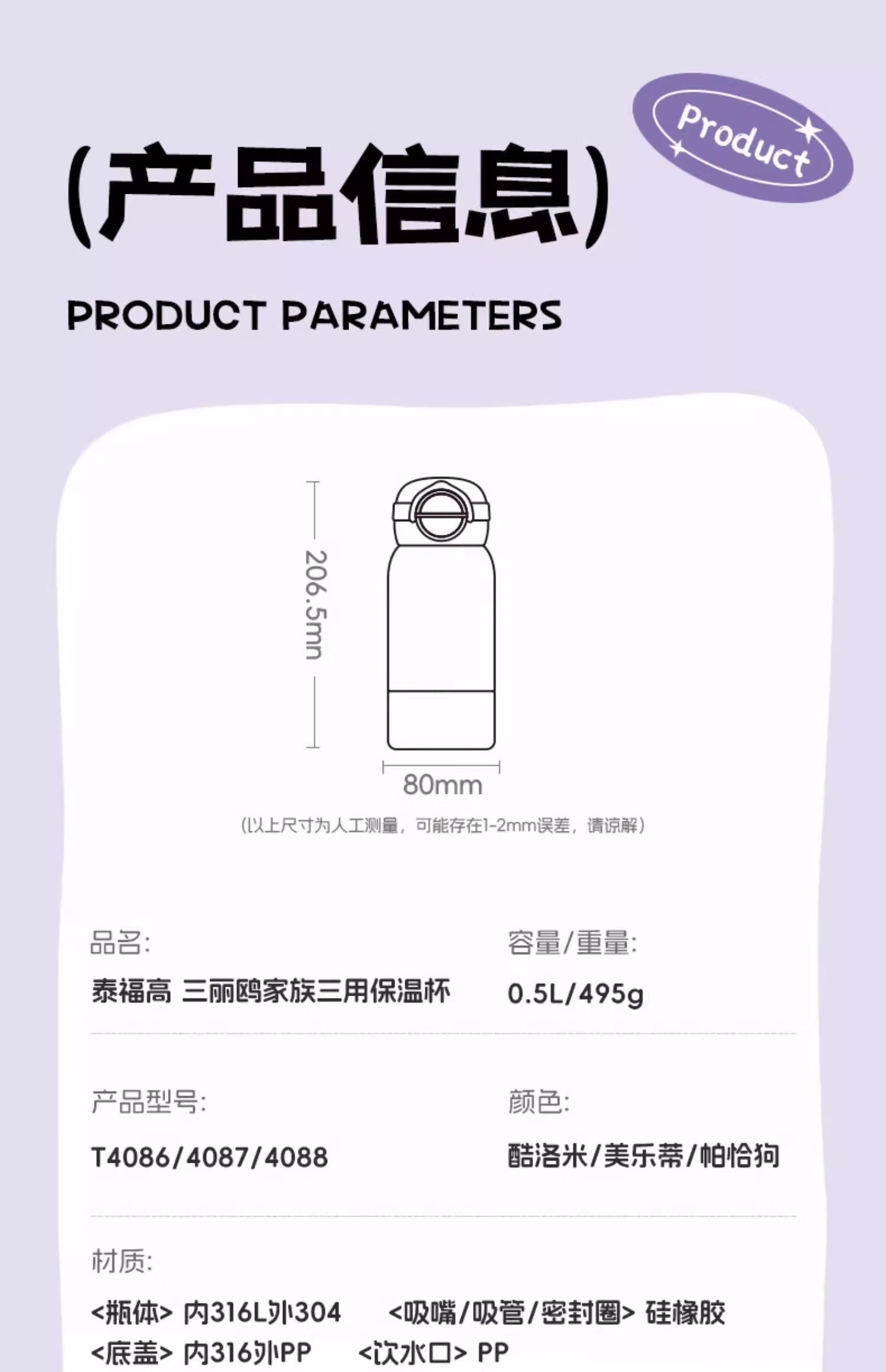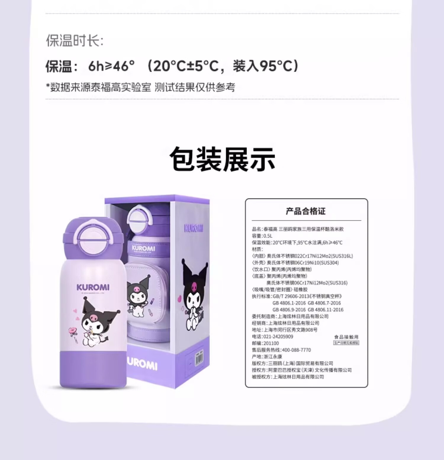 泰福高 联名三丽鸥三用保温杯500mlT4086/T4087/T4088