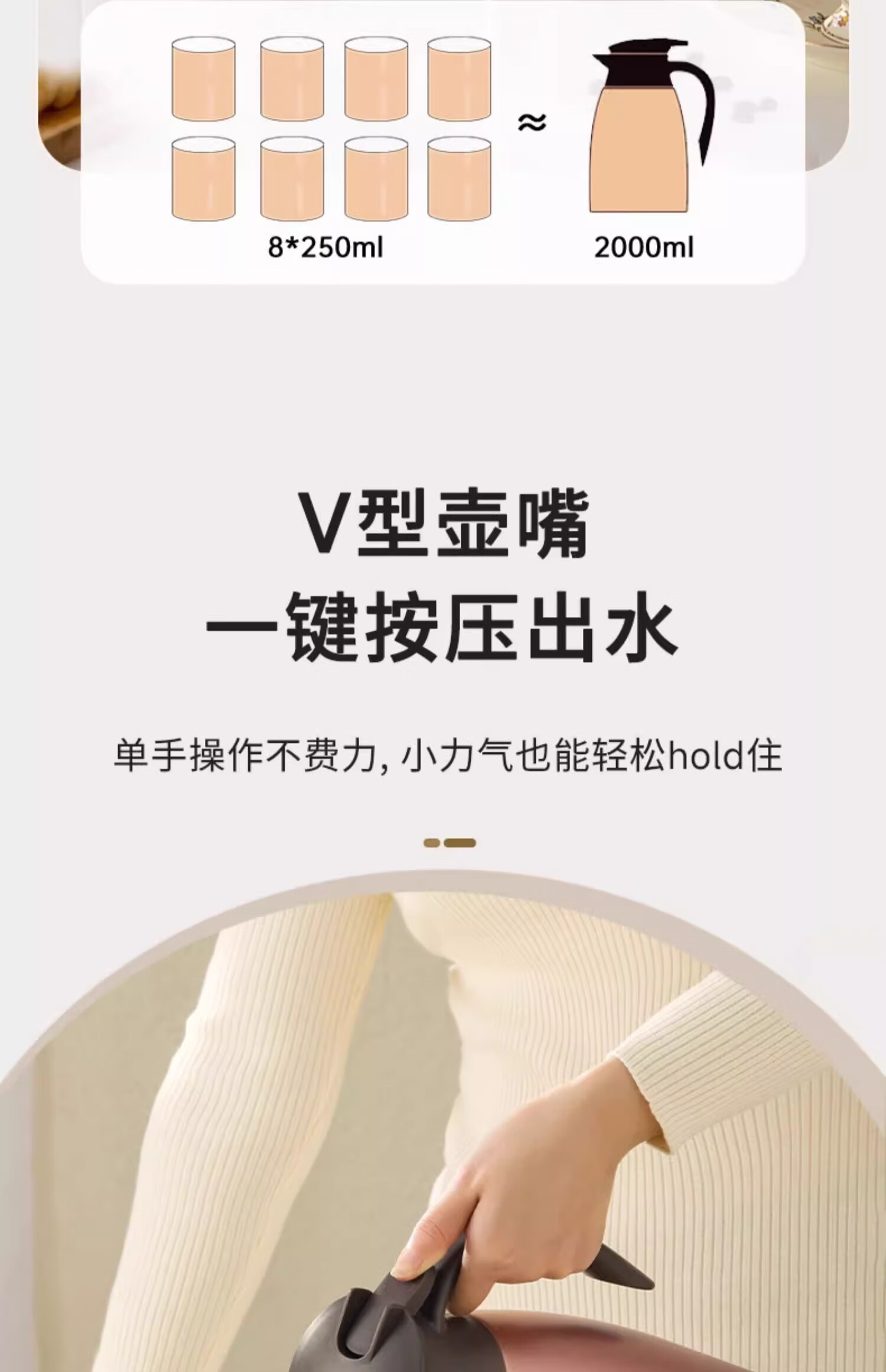 长效保温;按压出水;316不锈钢内胆,饮水更健康