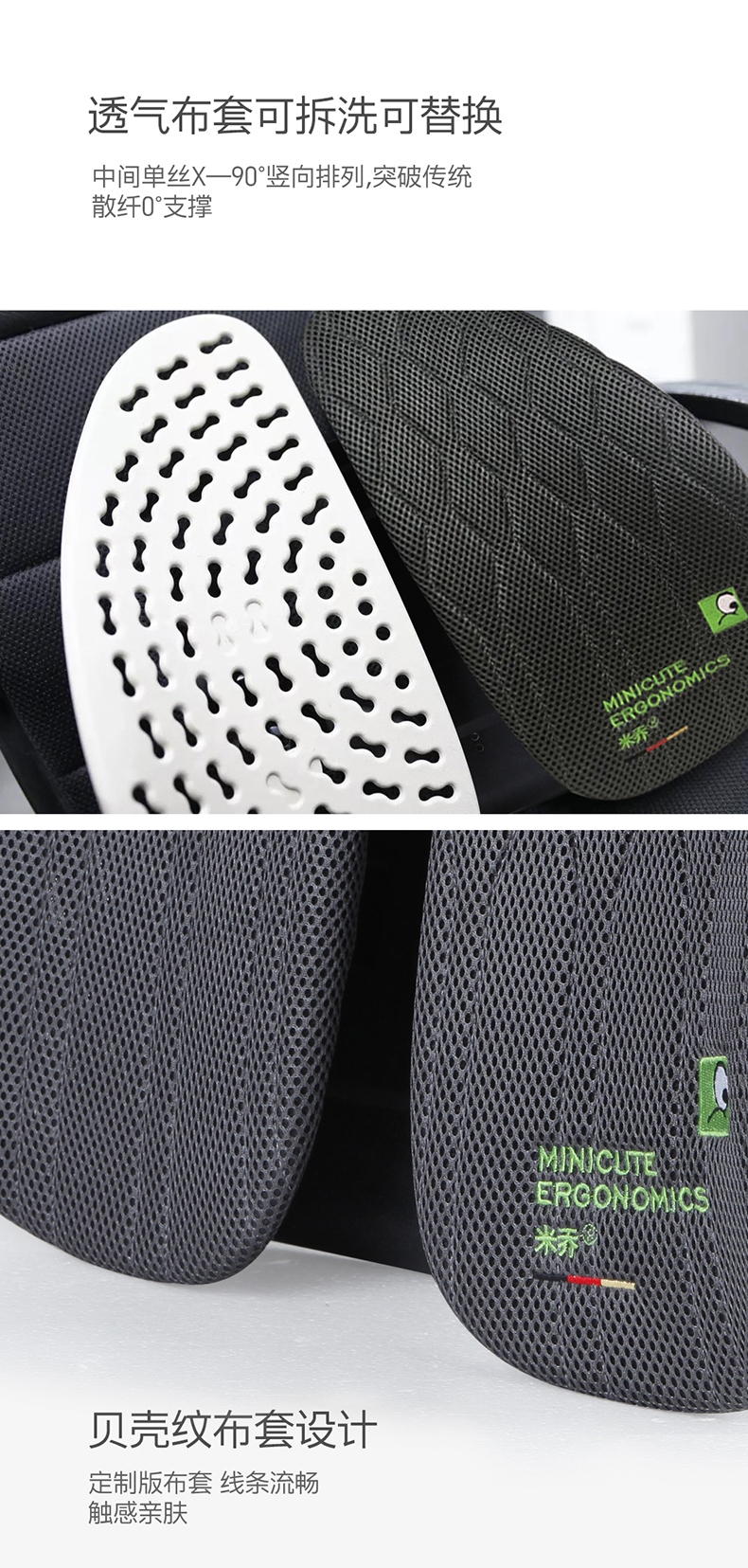 透气布套可拆洗可替换;贝壳纹布套设计;增强型支撑设计