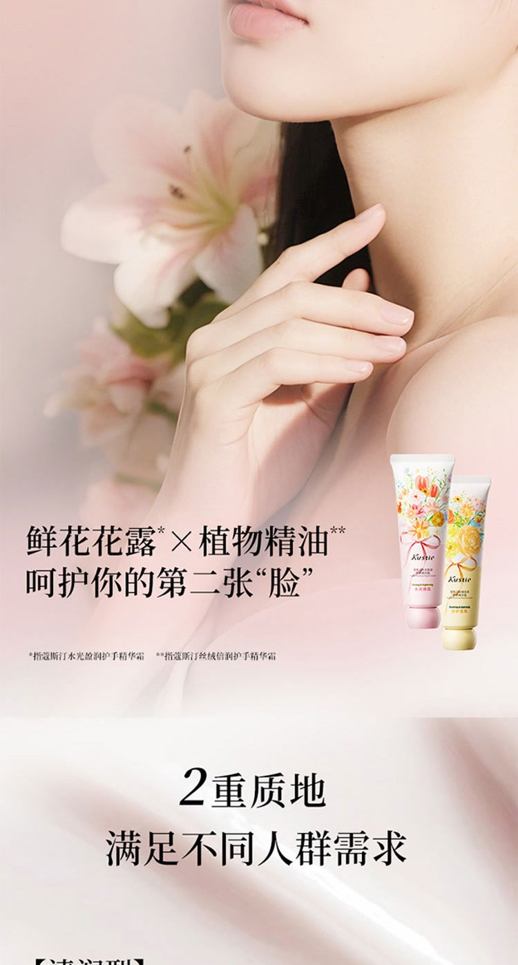 护手霜:滋养 补水 保湿;身体乳:嫩肤 滋润 防裂;沐浴露:滋润 清洁 持久留香 嫩肤 清爽;洗发水:改善毛躁 修护 丰盈蓬松