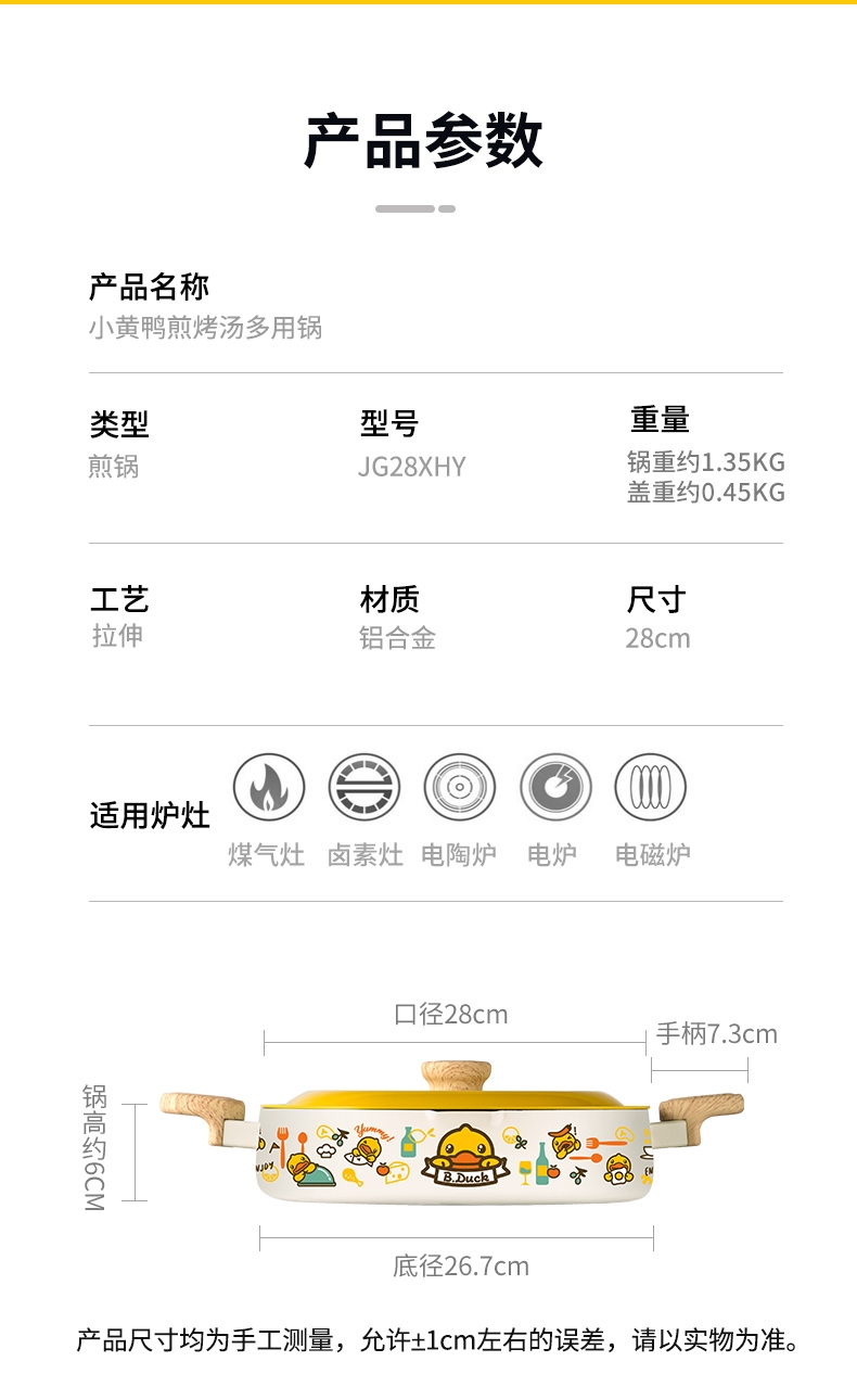 炊大皇 小黄鸭联名平底锅不粘锅煎蛋锅JG28XHY