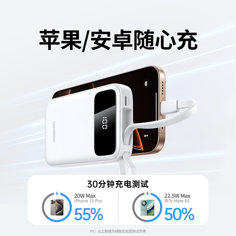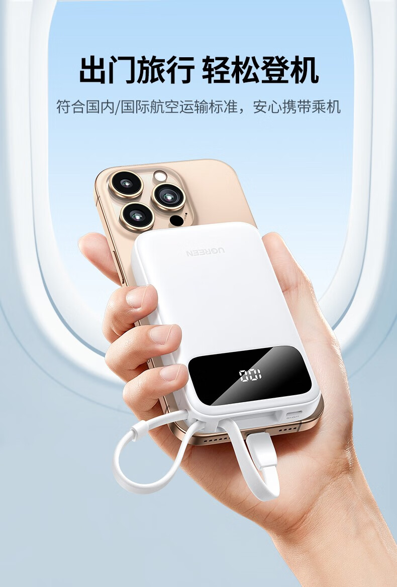 智能数显屏电量清晰可见;符合国内/国际航空运输标准,安心携带乘机;随行自带线,充电一步到位