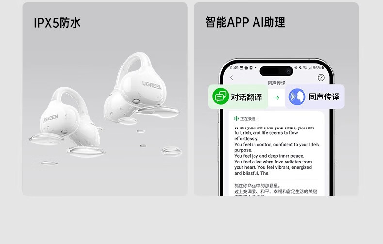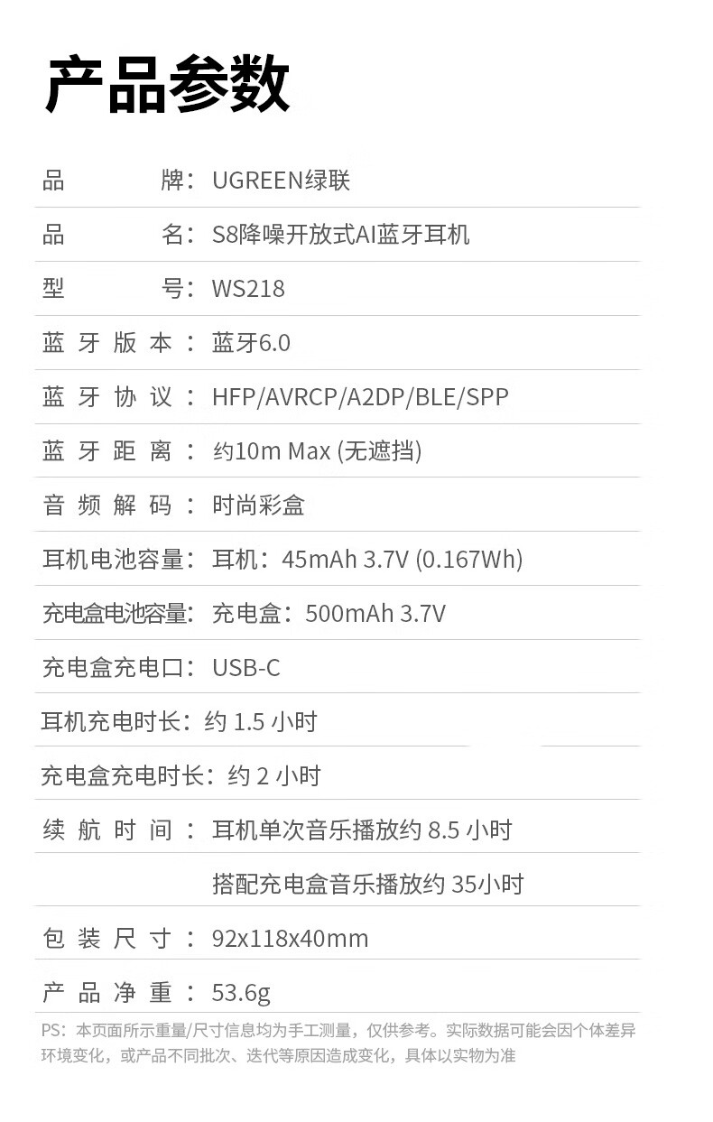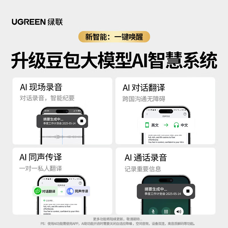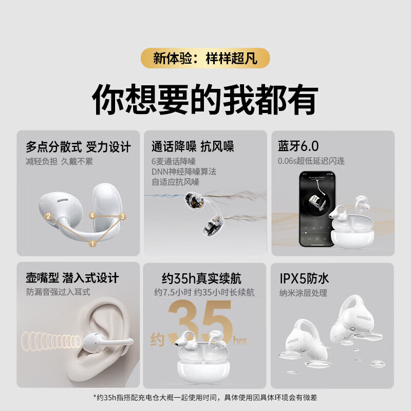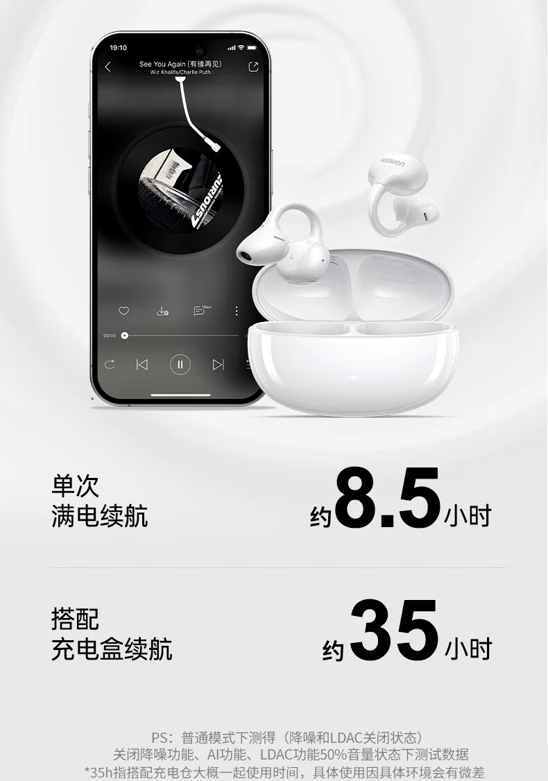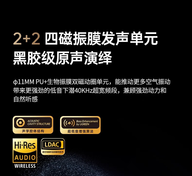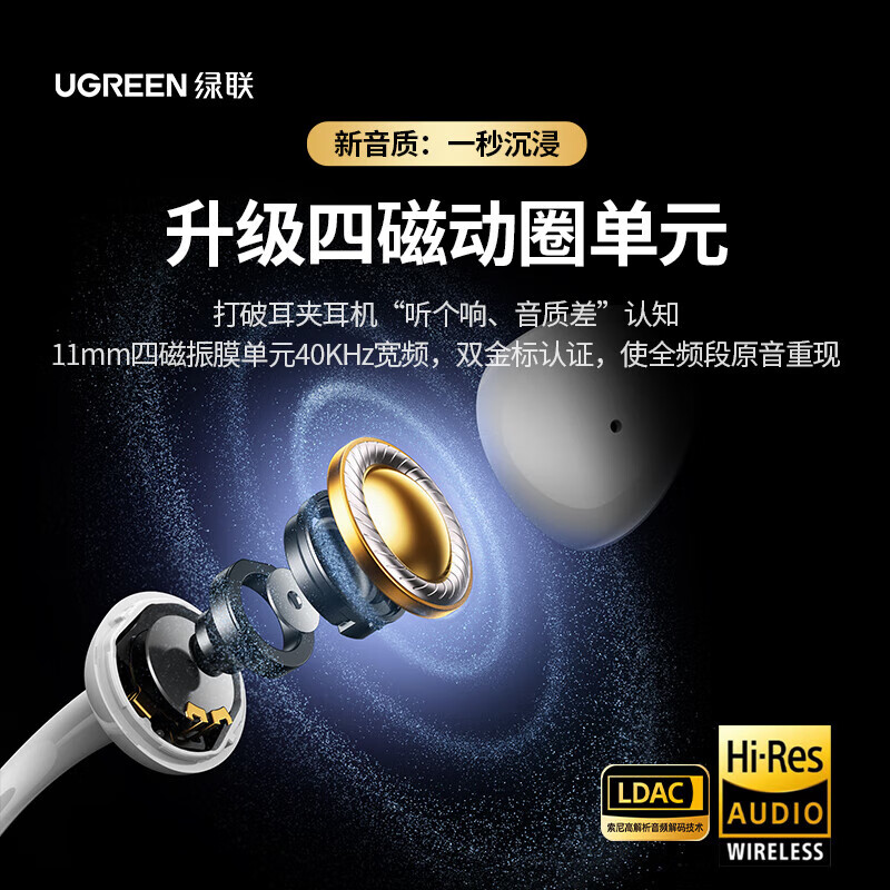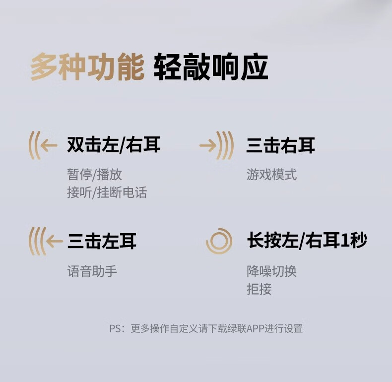 新一代蓝牙6.0技术视听/游戏超流畅;四磁振膜发声单元,黑胶级原声演绎;APP支持三种降噪程度选择,智能阻隔环境杂音时刻感