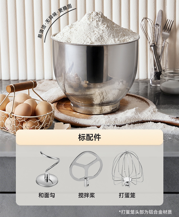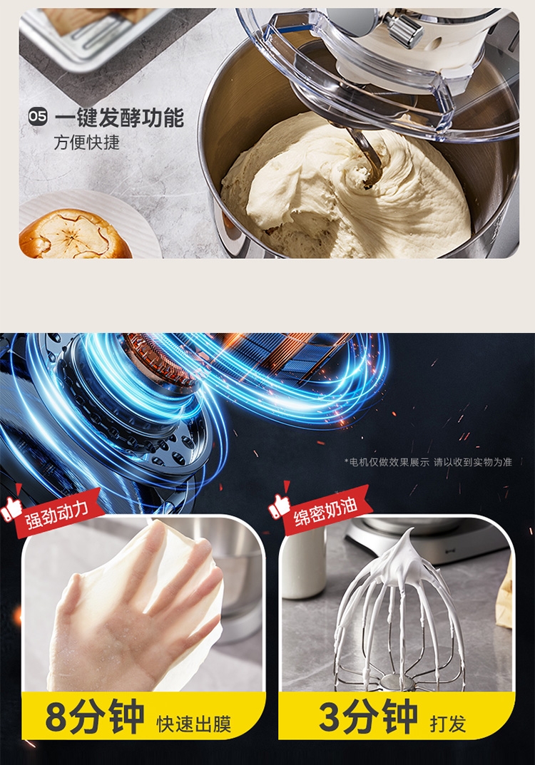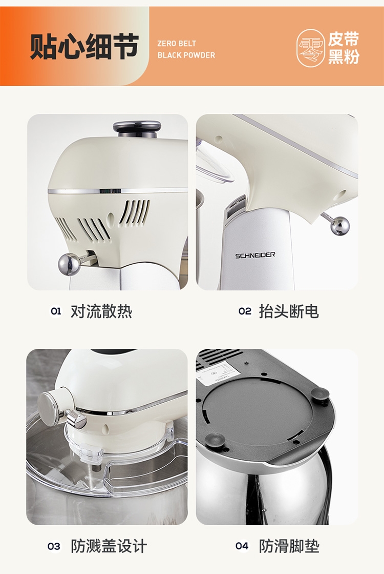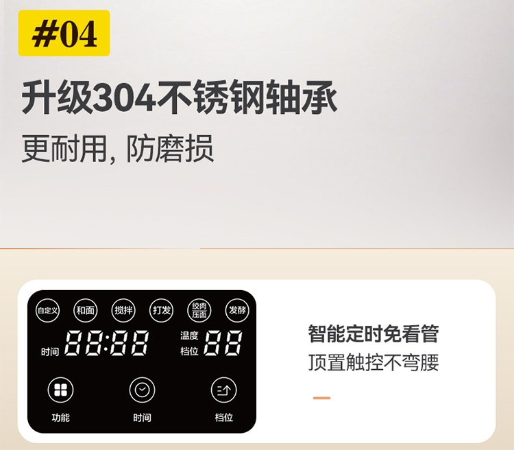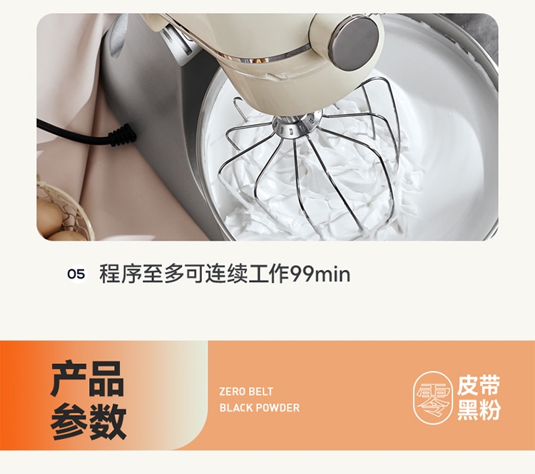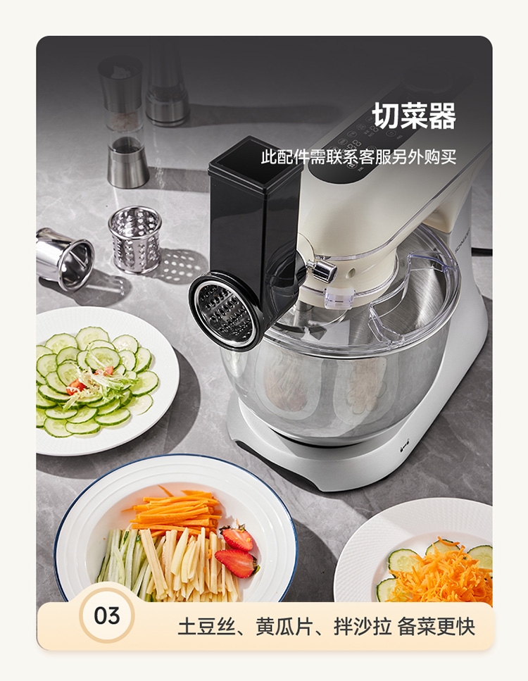 与家人孩子一起制作食物,安全有趣,增进感情;厚重底座、防滑脚垫,确保高速工作时不会“跳舞”移位;搅拌碗、搅拌头等主要部件通常为可拆卸设计