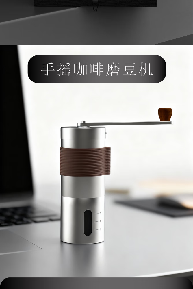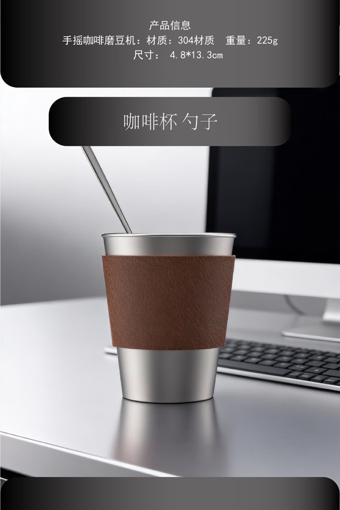 手摇咖啡磨豆机 :手摇现磨,锁住咖啡本香;咖啡杯: 杯身恒温,留住舌尖暖意;勺子: 一勺精准,调配浓淡随心