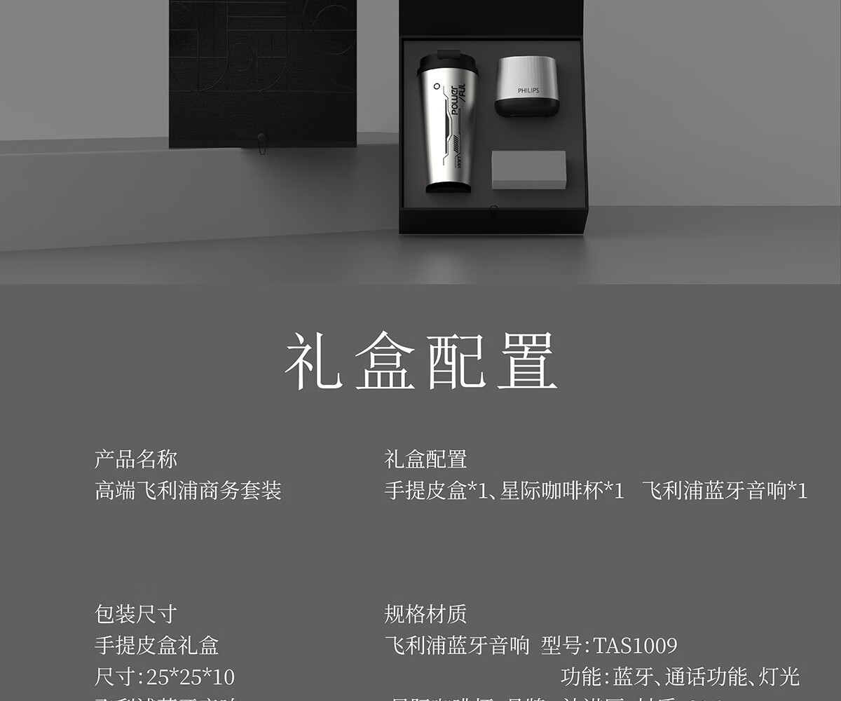 配置清单:手提皮盒*1、星际咖啡杯*1 飞利浦蓝牙音响*1