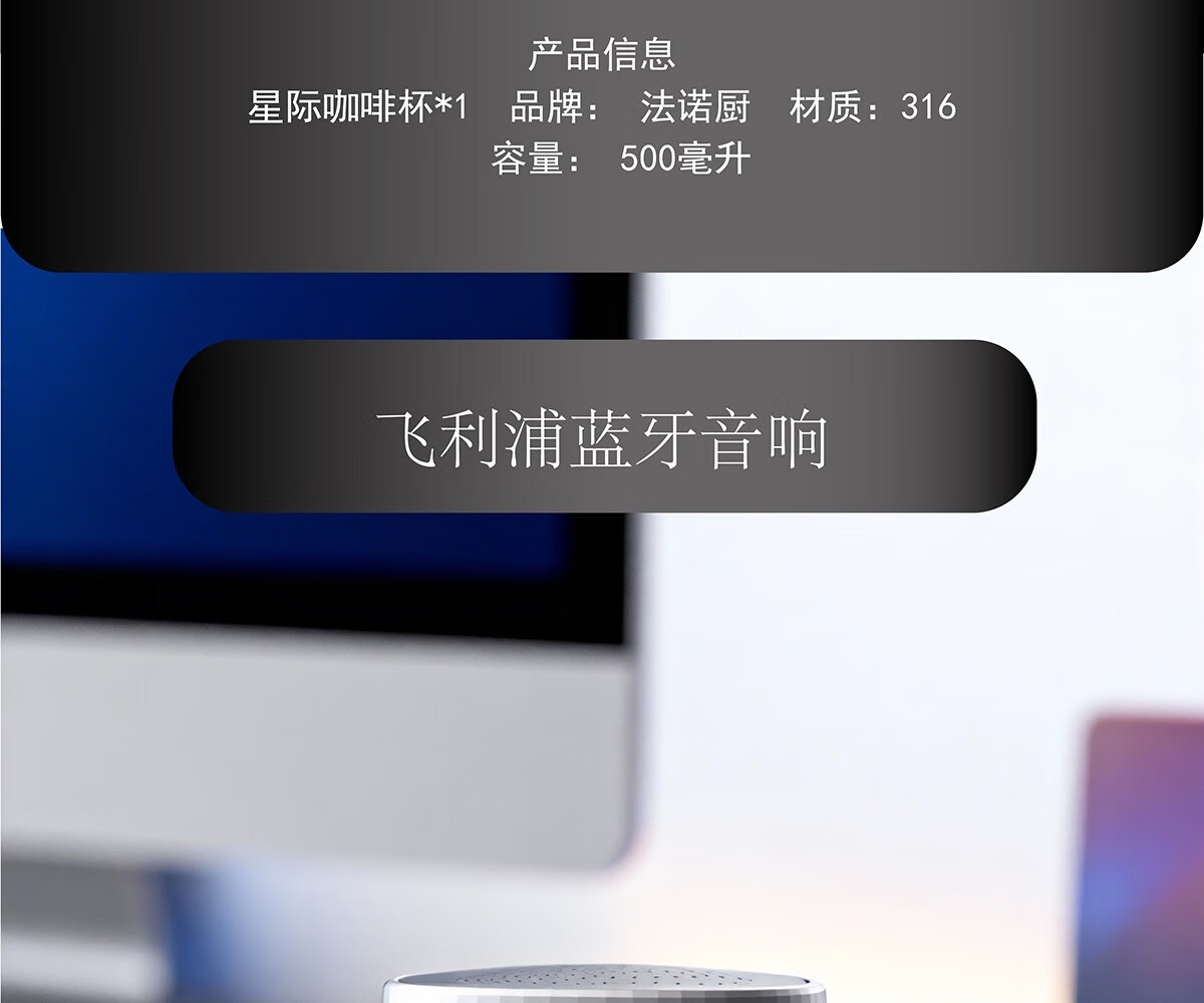 飞利浦蓝牙音响:星际咖啡杯: 品牌: 法诺厨 材质:316 容量: 500毫升
