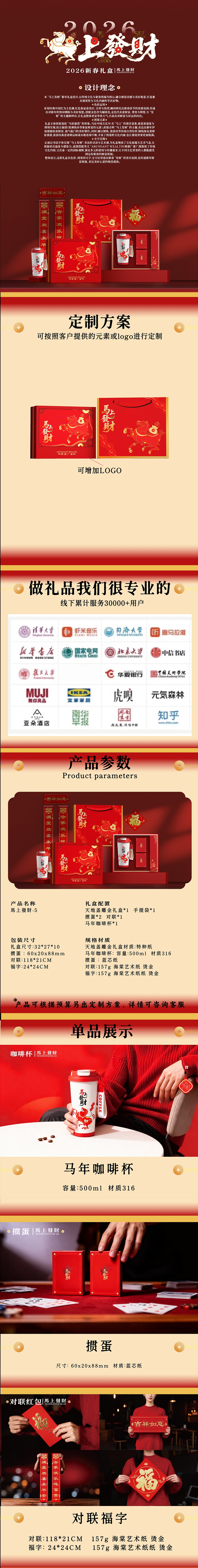 配置清单:天地盖雕金礼盒*1、 手提袋*1 马年咖啡杯*1、 掼蛋*2 对联*1