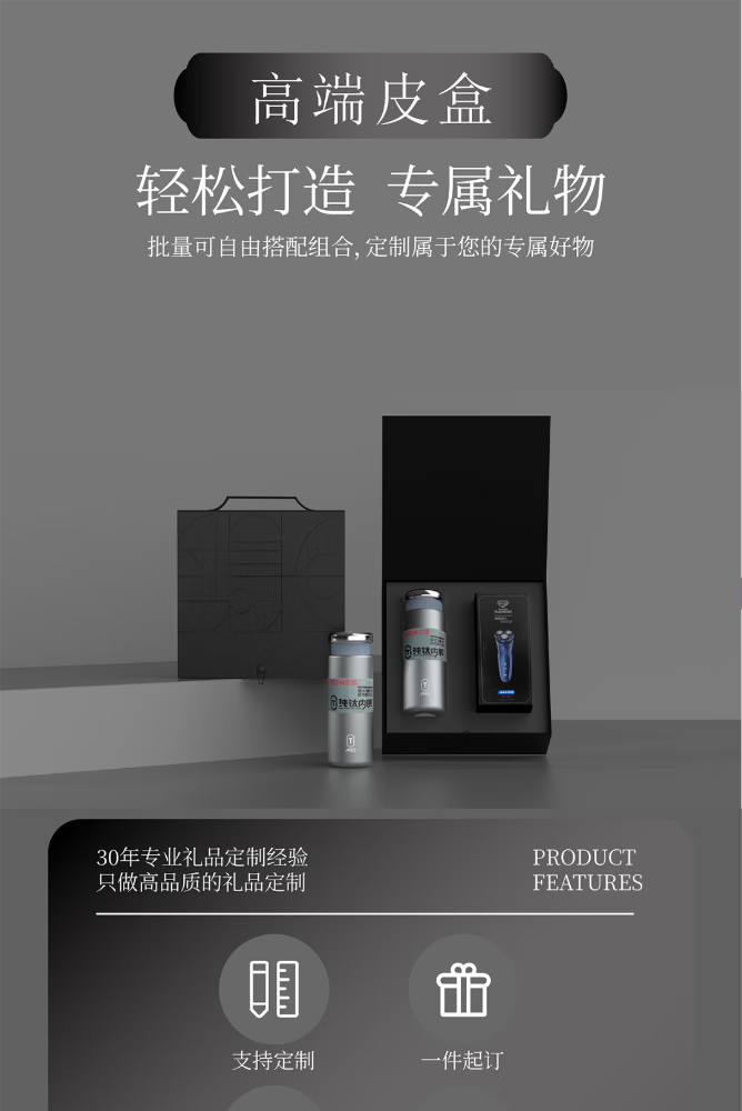 皮盒:质感奢雅,定制收纳珍物;爱仕达钛杯:高钛锁鲜,轻便无异味;剃须刀:贴面净剃,敏肌无负担