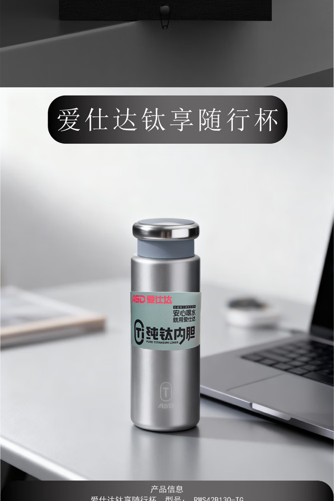爱仕达钛享随行杯:杯 型号: RWS42B13Q-TG 材质: 内胆纯钛 容量:420ML