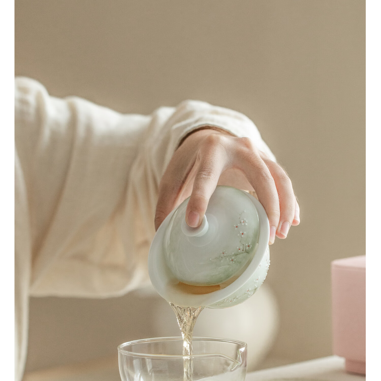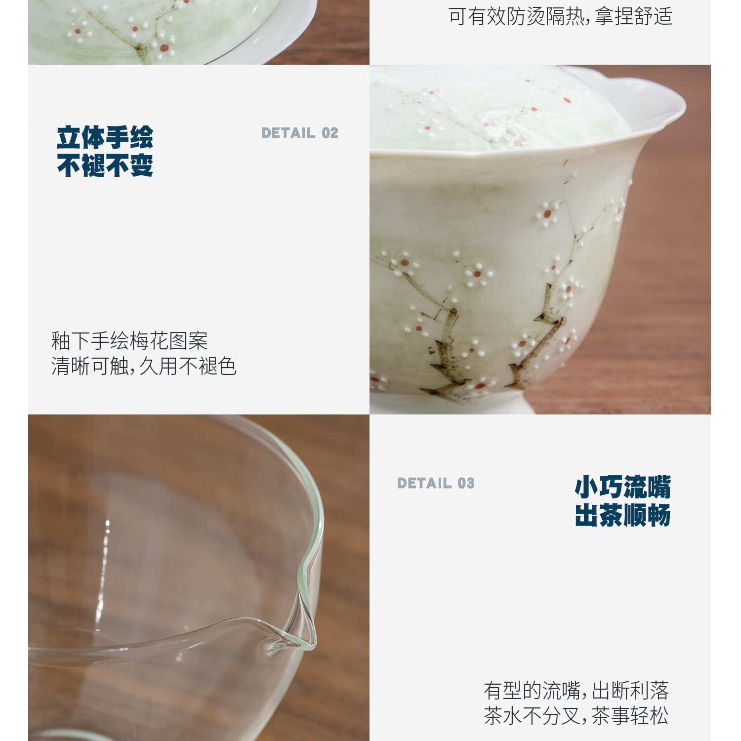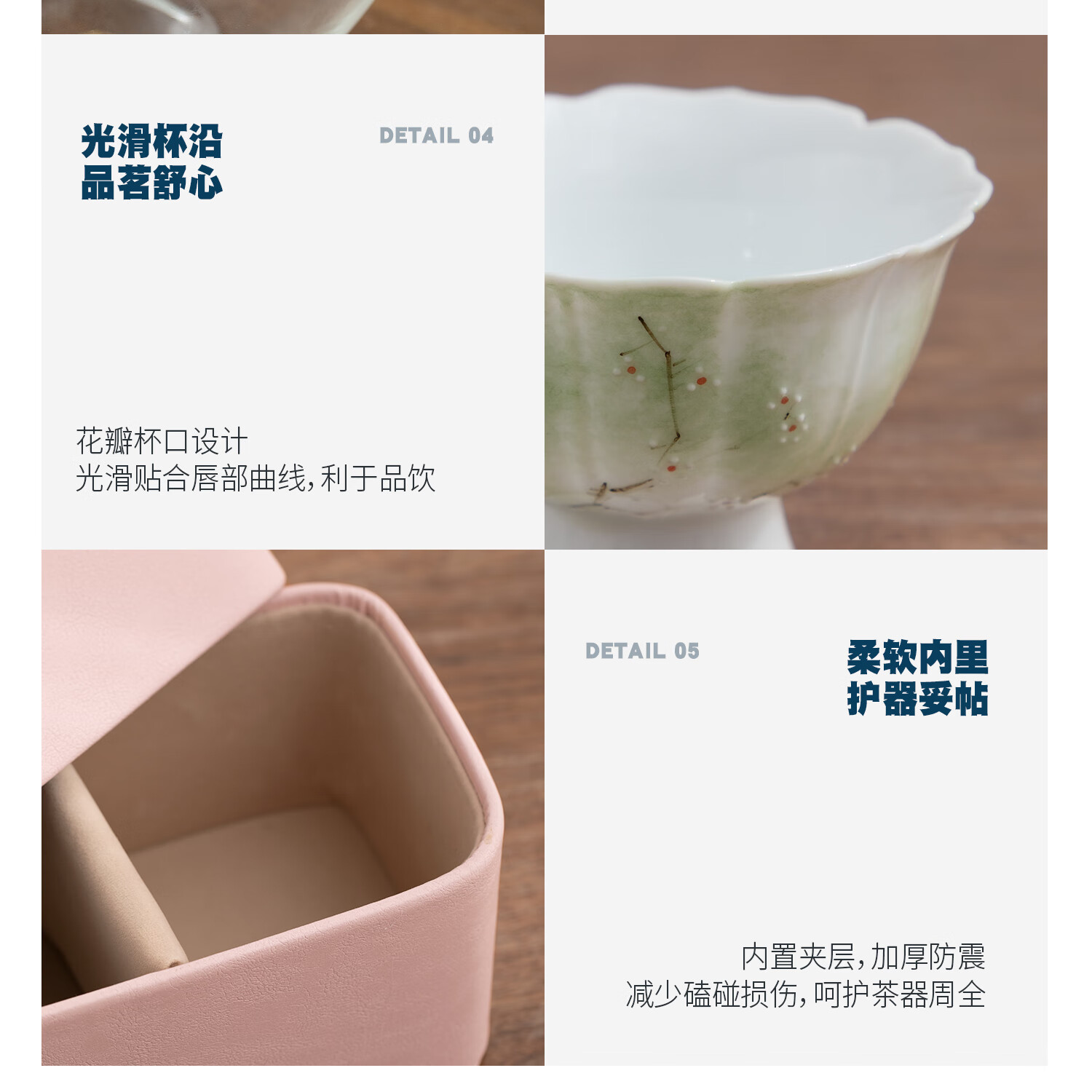 手绘探春图案独特别致,每一件都带有手工温度;口边缘精致耐看,拍照出片;露营打卡或办公室下午茶都有格调