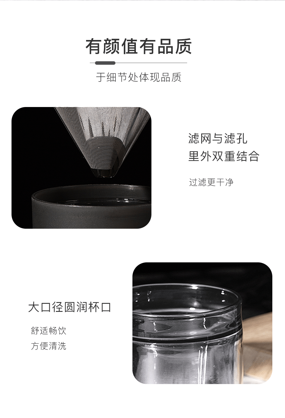 产品材质:杯体-高硼硅玻璃、茶漏-304不锈钢;收纳-PP,帆布袋