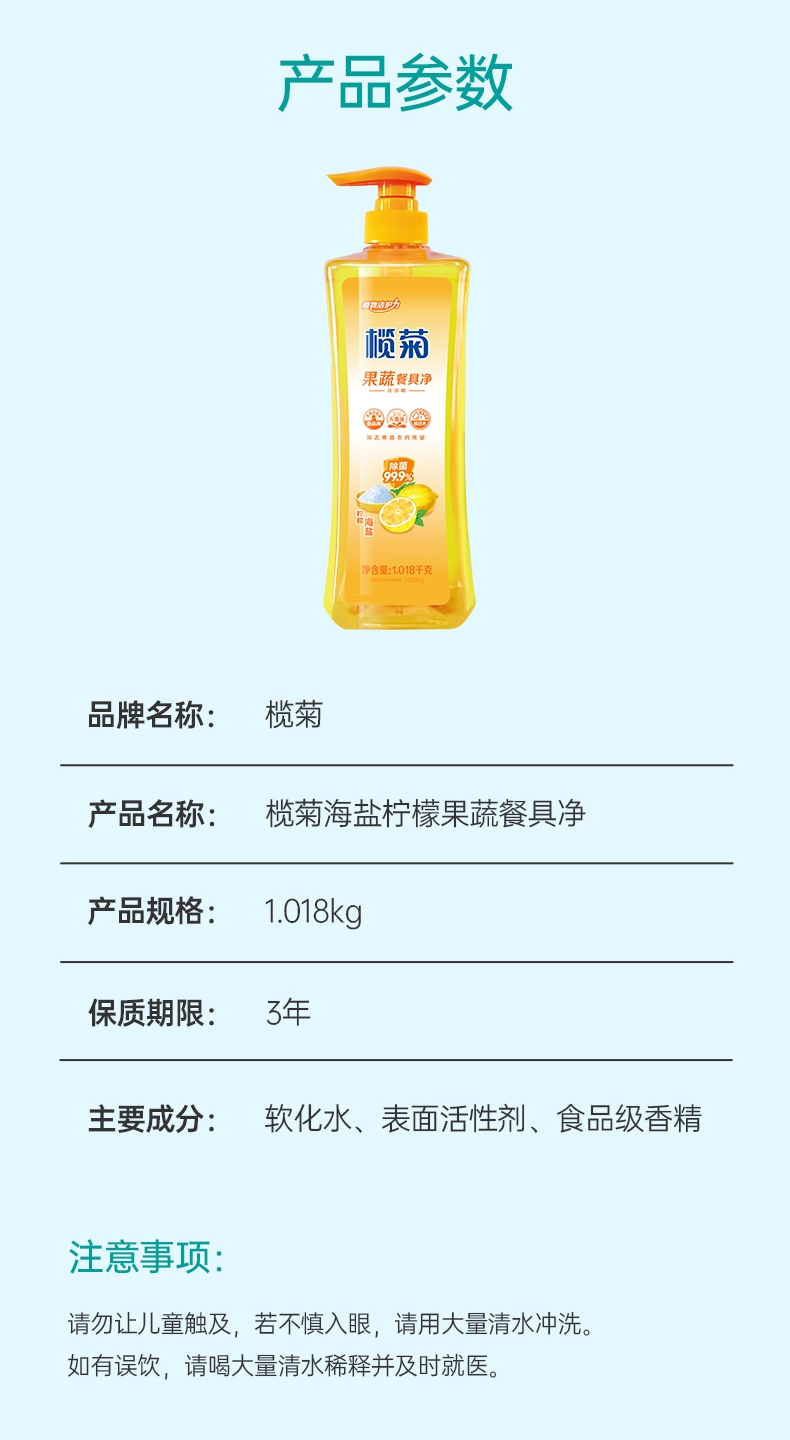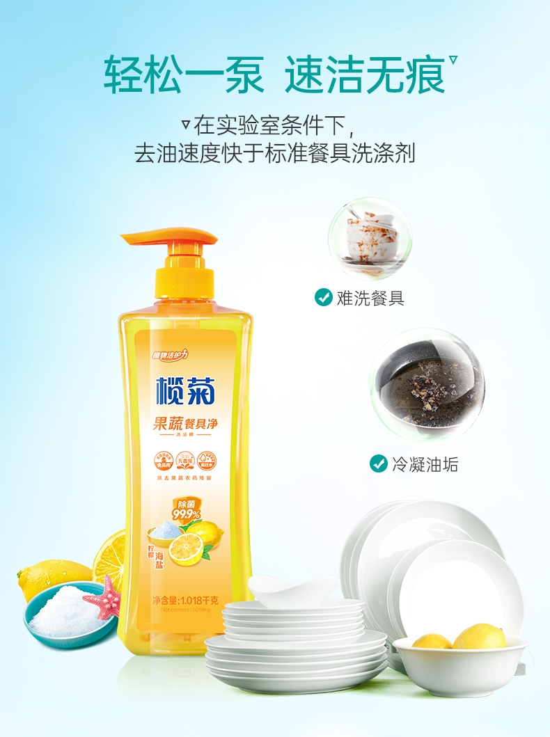 榄菊 果蔬餐具净海盐柠檬1.018kg