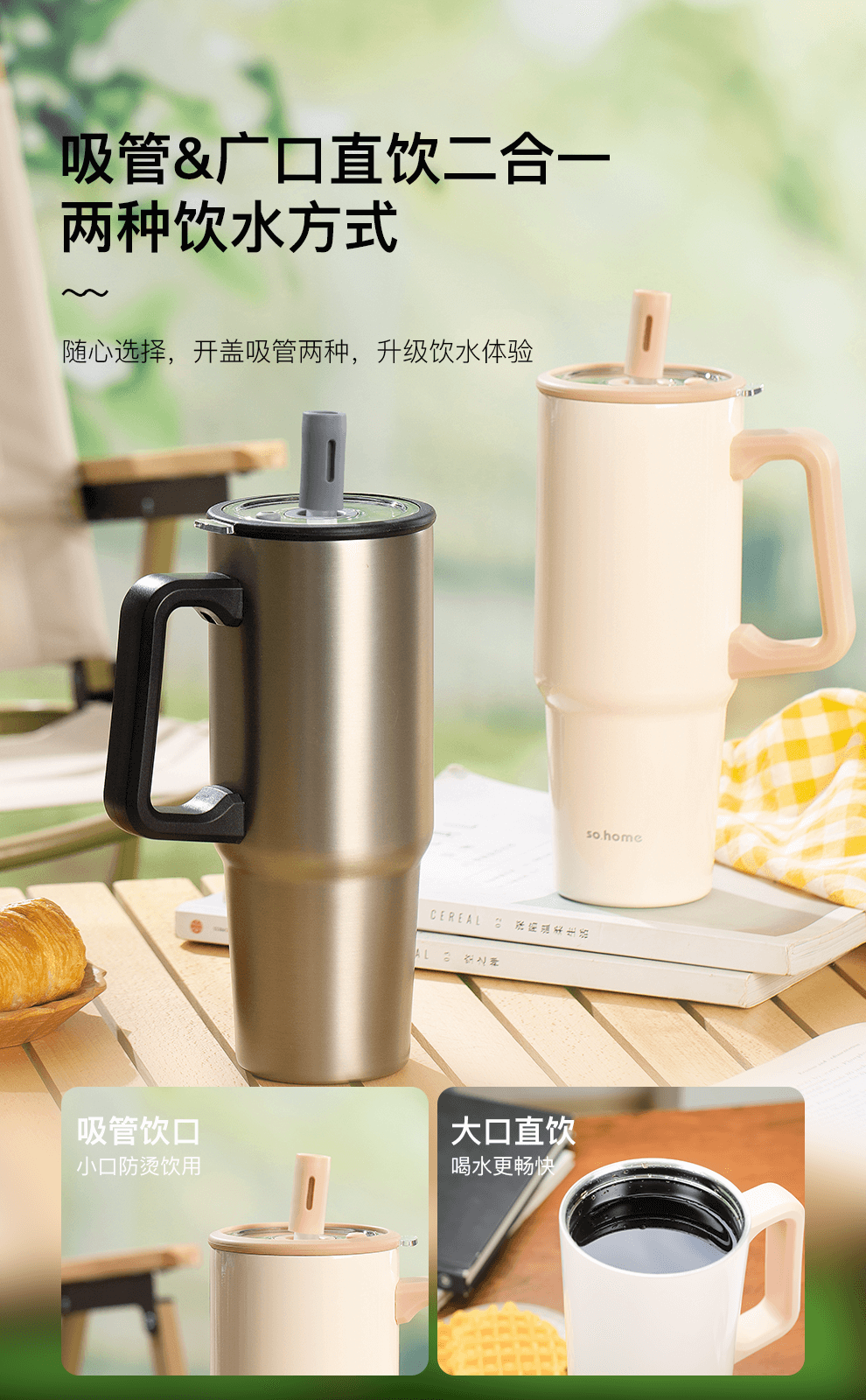 严选SUS304不锈钢内胆,保温保冷兼具;900ml超大容量,随心畅饮;手柄设计,便捷出行;吸管饮水不易呛;广口设计,清洗干净,无死角