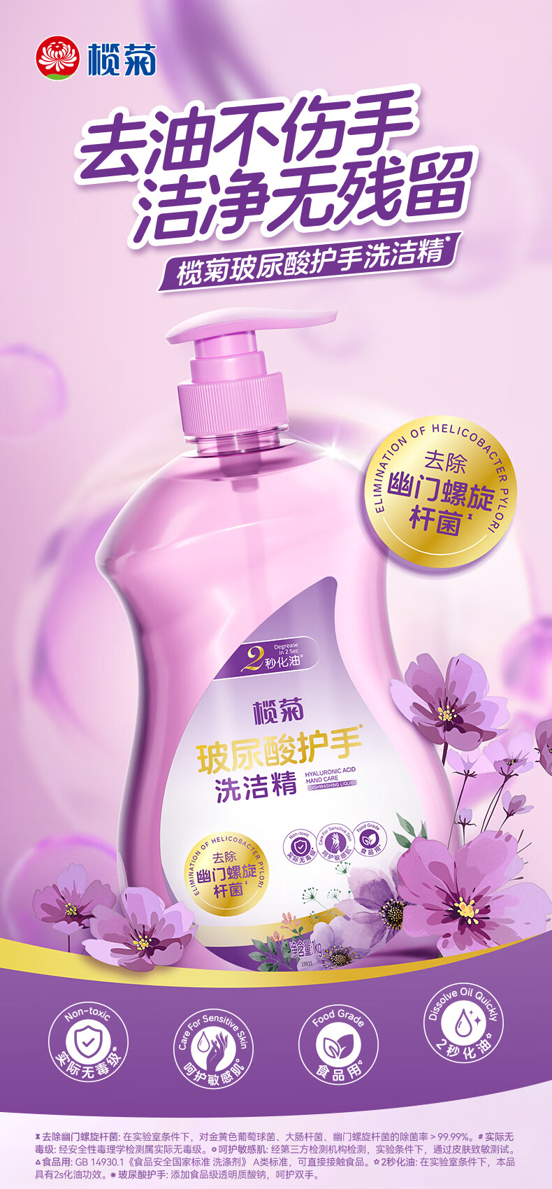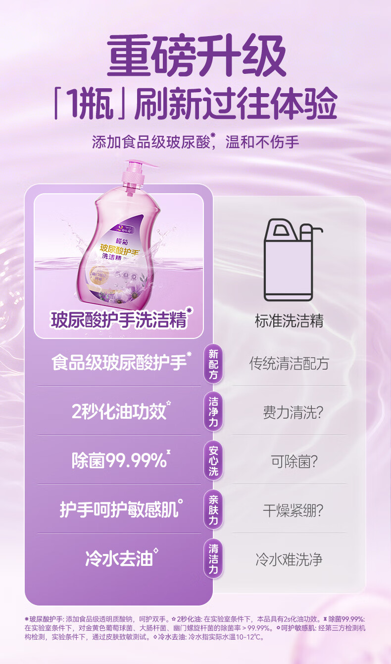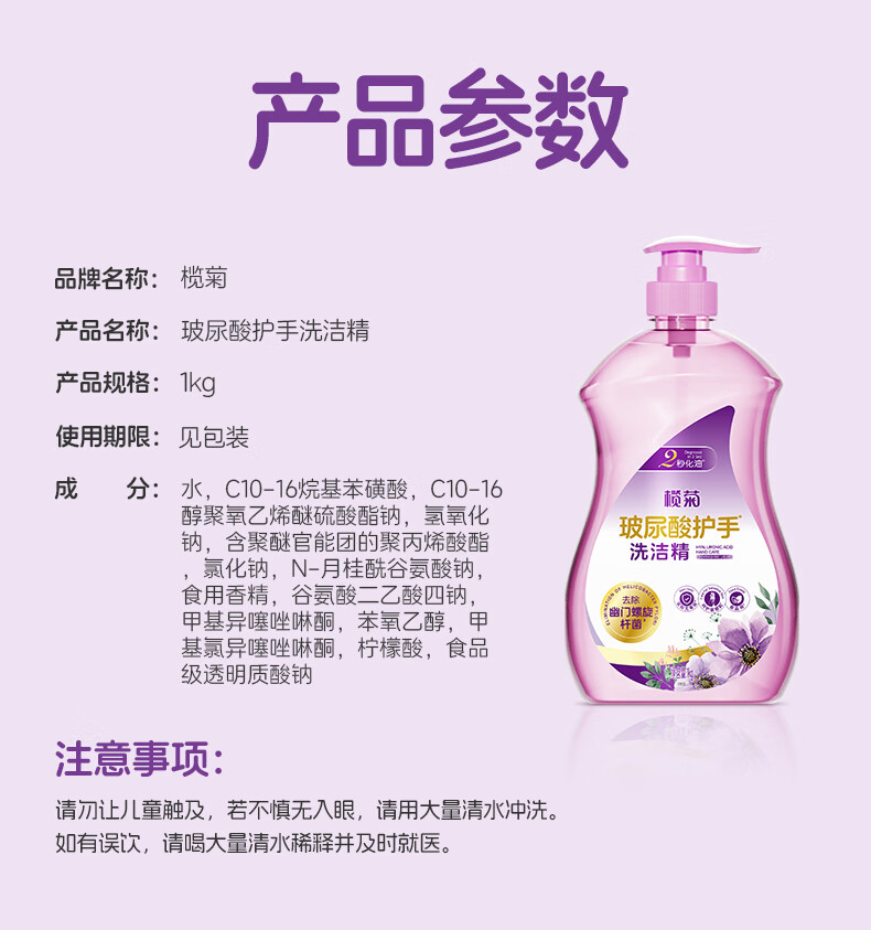 食品级玻尿酸护手配方;除菌99.99%;2秒化油易漂洗易过水