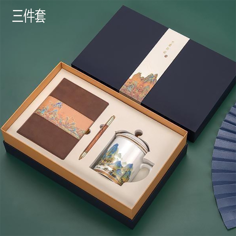三件套配置:陶瓷办公杯×1、A5笔记本×1、黄铜笔×1