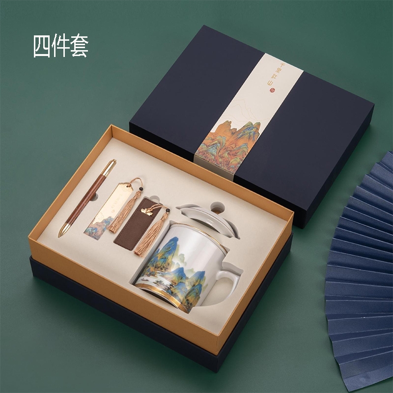 正私享 千里江山办公杯黄铜笔套装ZSX-JS017/ZSX-JS018ZSX-JS019