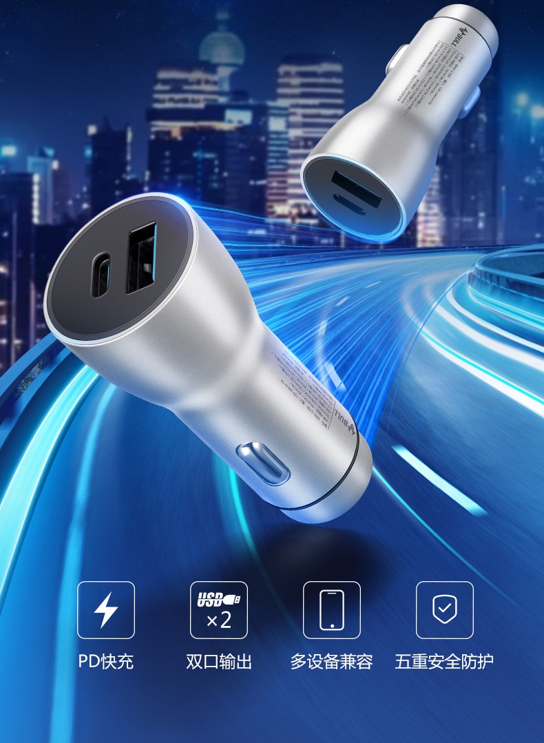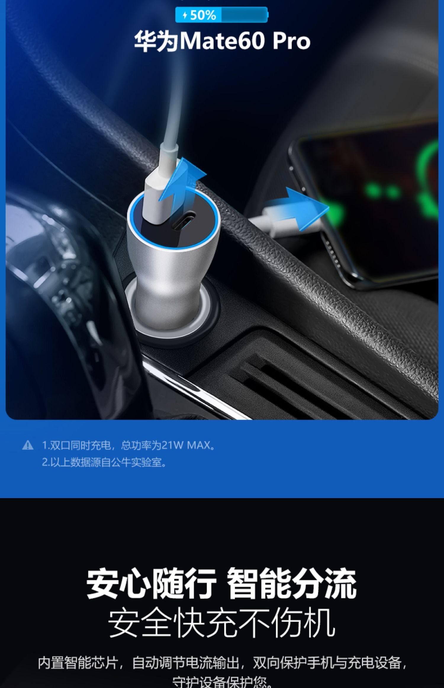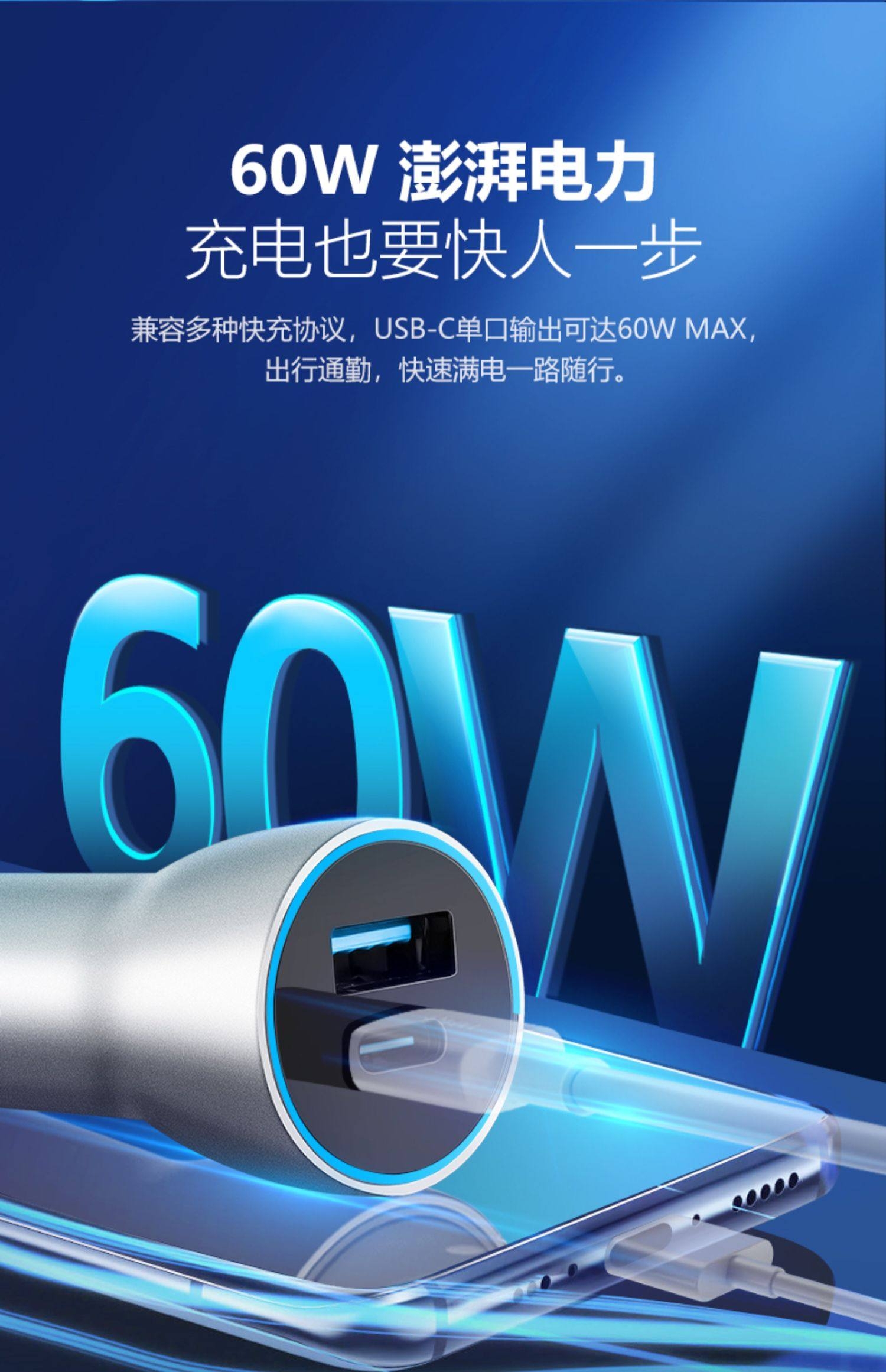 PD60W 满电不等待;智能分流 安全快充不伤机;双口输出