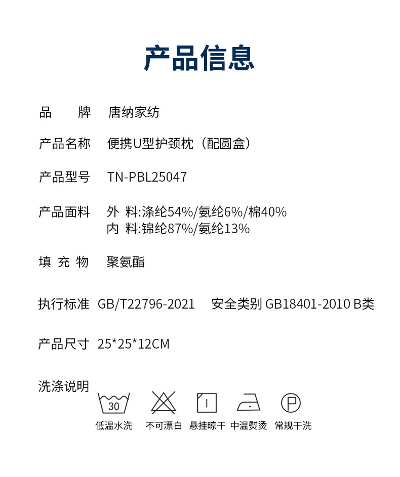 唐纳家纺 便携U型护颈枕配圆盒TN-PBL25047