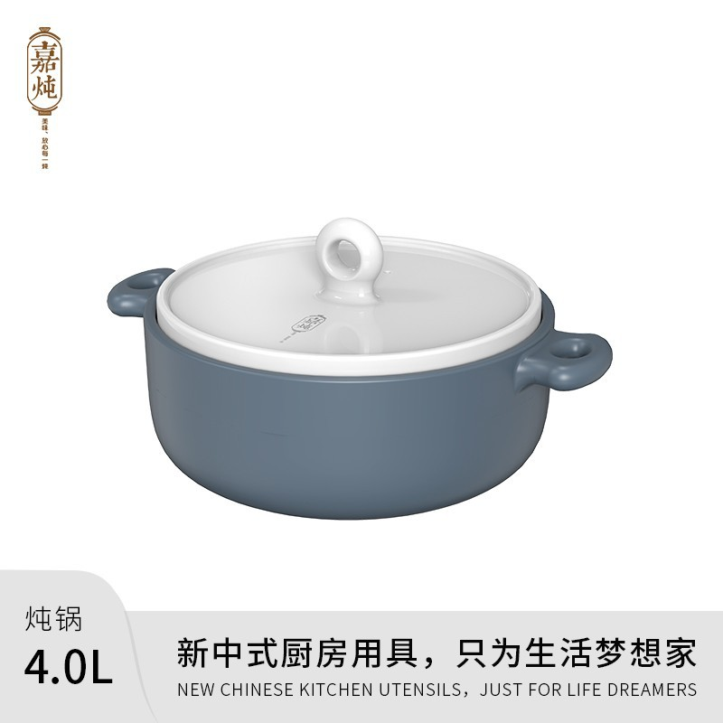 蓝白搭配出素雅感;锅体容量适合 4-6人使用。;富有现代感