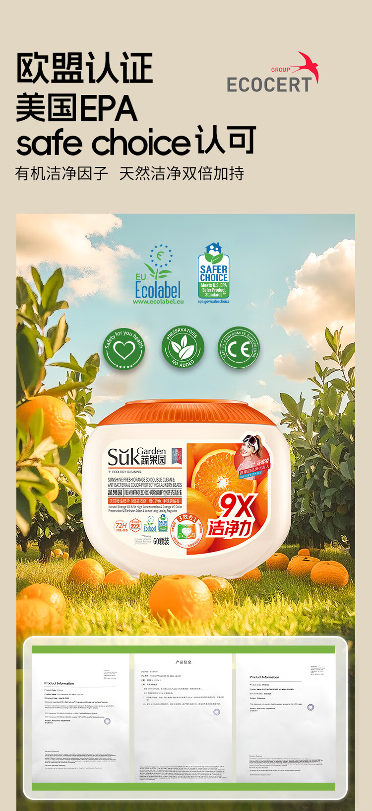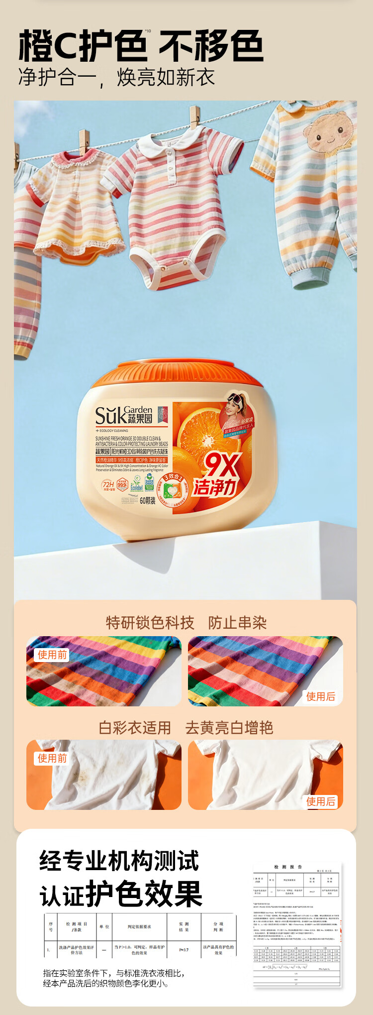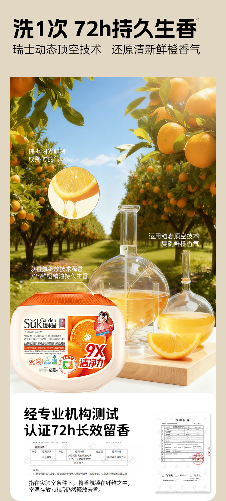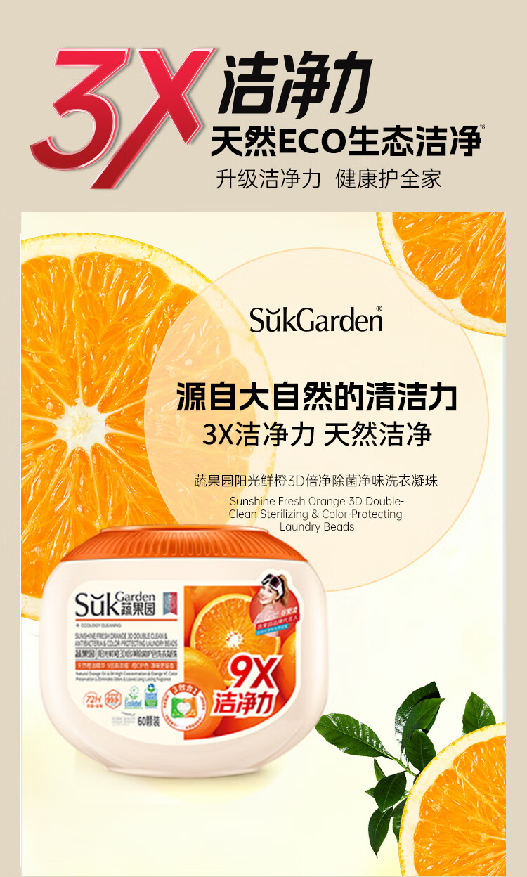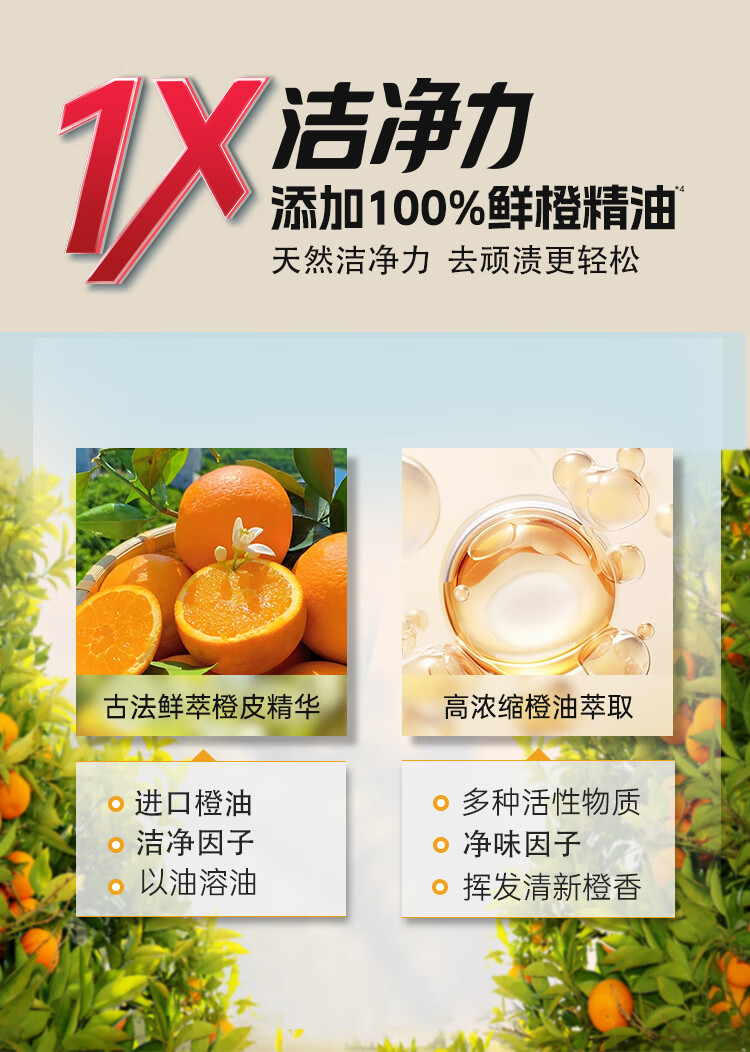天然橙油精华,9倍高浓缩;72H留香橙C配方;柔顺护色又净味