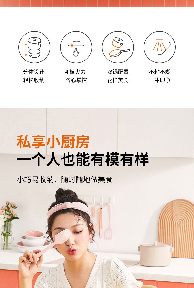 分体式设计 不粘涂层;多功能/旅行便携;三档火力调节